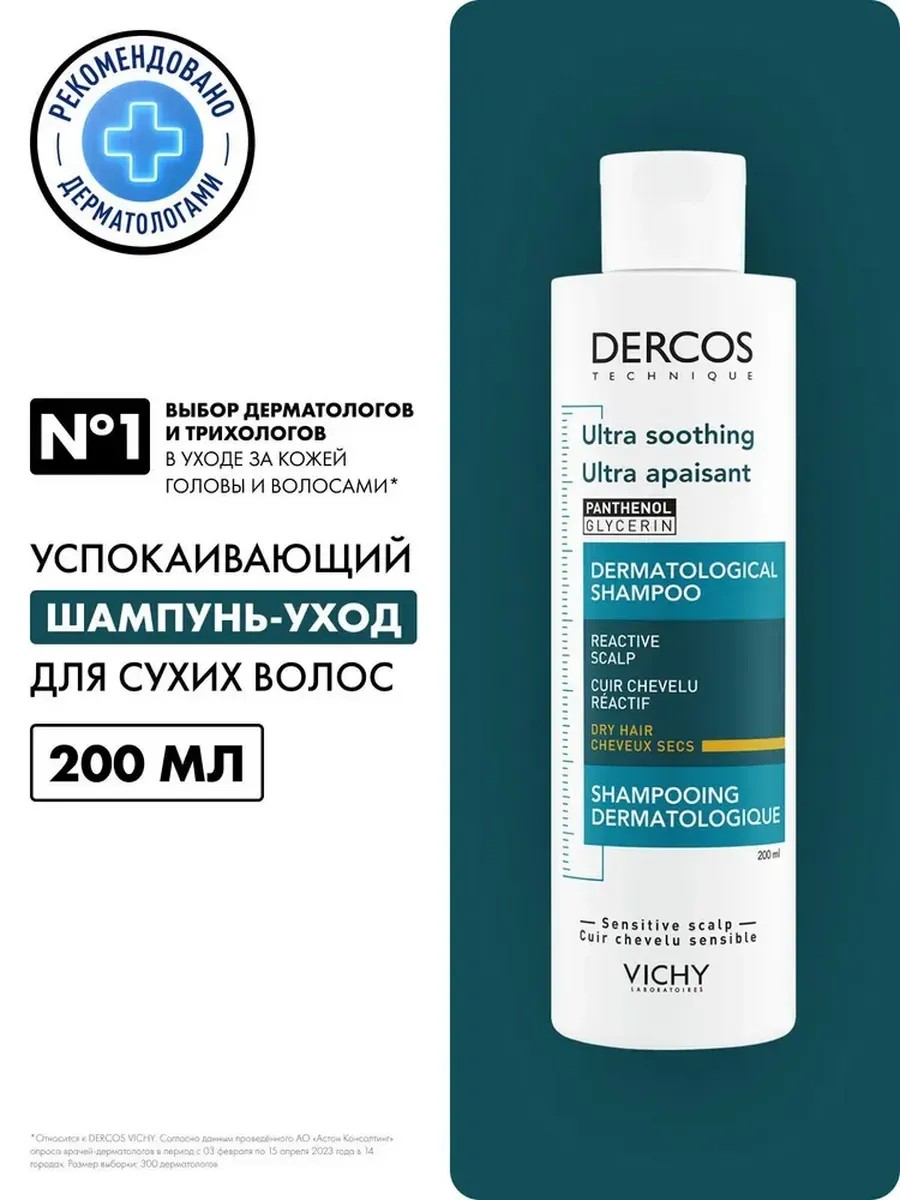| Полное наименование товара | Dercos Успокаивающий шампунь-уход для сухих волос 200 мл |