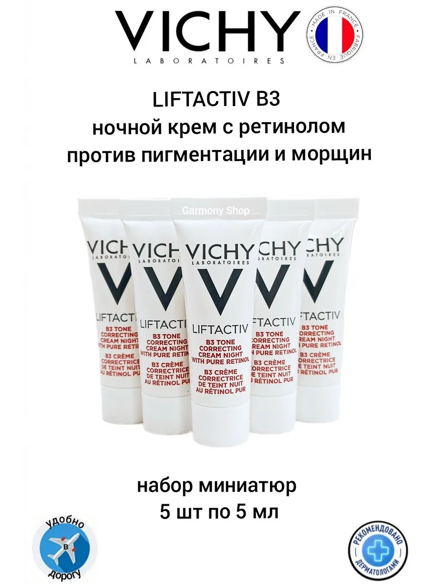 Liftactiv B3 ночной крем для лица с ретинолом против пигментации и морщин, в набор входит 5 тюбиков по 5 мл.