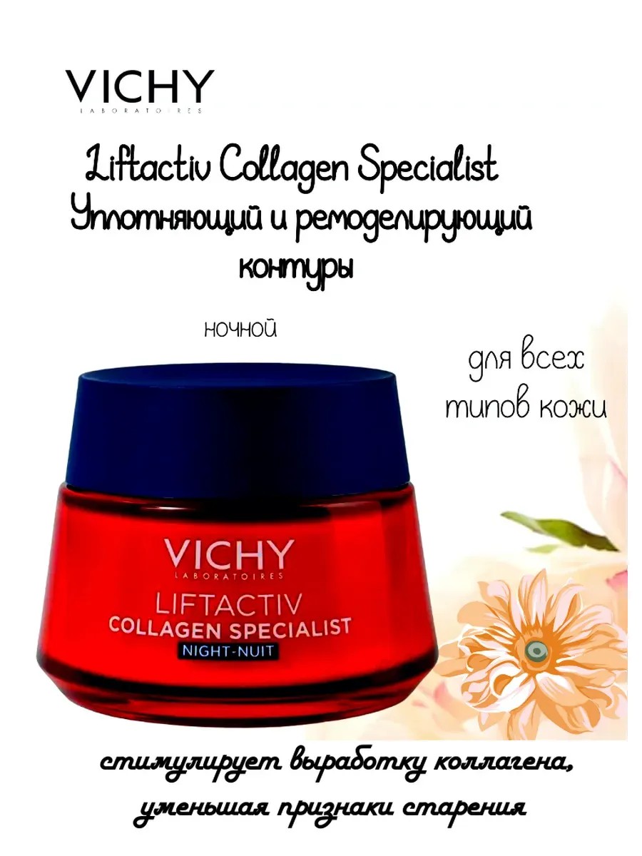 | Полное наименование товара | Vichy liftactiv collagen специалист 50 мл омолаживающий антивозрастной крем для лица и облати декольте, ночной |