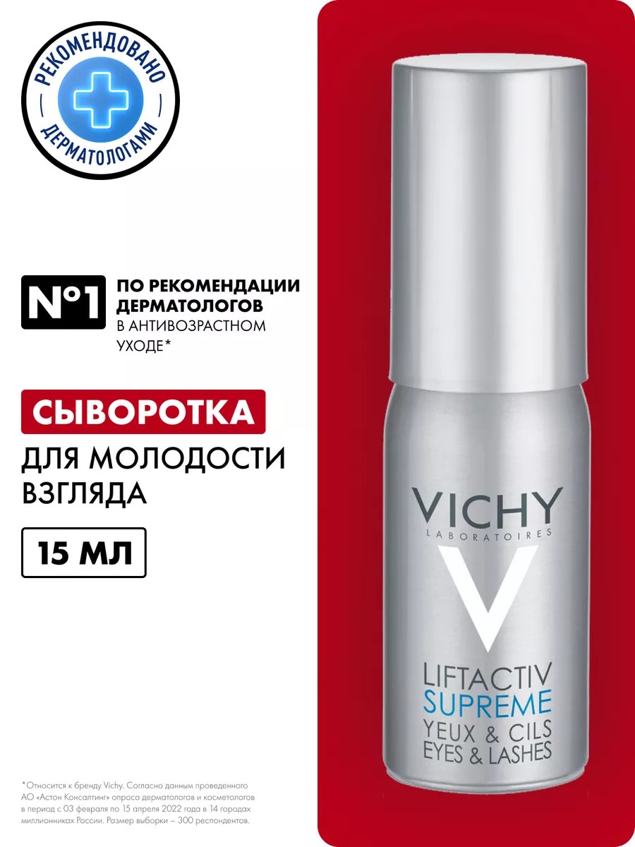 Сыворотка Liftactiv Supreme Eyes & Lashes разработана для ухода за кожей вокруг глаз и преображения ресниц. АКТИВНЫЕ ИНГРЕДИЕНТЫ: Рамноза (10%) способствует выработке собственного коллагена и эластина, повышает плотность кожи, обеспечивает заметный антивозрастной эффект. Гиалуроновая кислота обеспечивает интенсивное увлажнение, разглаживает морщины, делает кожу более упругой и гладкой. Светоотражающие частицы придают коже век естественное сияние, а взгляду – открытость. Керамиды (церамиды) – межклеточный «цемент», сохраняющий кутикулу ресниц плотной и равномерной. Обеспечивает укрепление ресниц, способствует их росту и восстановлению густоты. Вулканическая термальная вода восстанавливает нормальный pH кожи лица, обеспечивает успокаивающий, увлажняющий и освежающий эффект. Аденозин уменьшает видимость возрастных изменений, обладает восстанавливающими и омолаживающими свойствами. СПОСОБ ПРИМЕНЕНИЯ: Наносите утром и/или вечером на очищенную кожу. Выдавите каплю на кончики пальцев, закройте глаза и нанесите с легким давлением на всю поверхность зоны вокруг глаз. Не открывая глаза, проведите легкими движениями пальцев от внутренних уголков глаз к внешним. Завершите процедуру также с закрытыми глазами – поместите указательные пальцы под ресницы и несколько раз приподнимите для эффекта подкрученных ресниц. ЭФФЕКТИВНОСТЬ: Сыворотка обеспечивает комплексный эффект, воздействуя на ресурс молодости кожи и способствуя преображению ресниц. Устраняет признаки сухости, способствует обновлению и омоложению кожи. После нанесения взгляд мгновенно становится сияющим. Через 1 месяц применения морщины сокращаются на -27%, ресницы восстановлены. Гипоаллергенно. Протестировано под контролем дерматологов и офтальмологов. Без парабенов. Подходит для чувствительной кожи. Может использоваться в качестве подарка девушке, учителю, подруге, другу, жене, мужу, коллеге, маме, папе на 23 февраля, 8 марта, День учителя, Новый год (НГ) или день рождения.