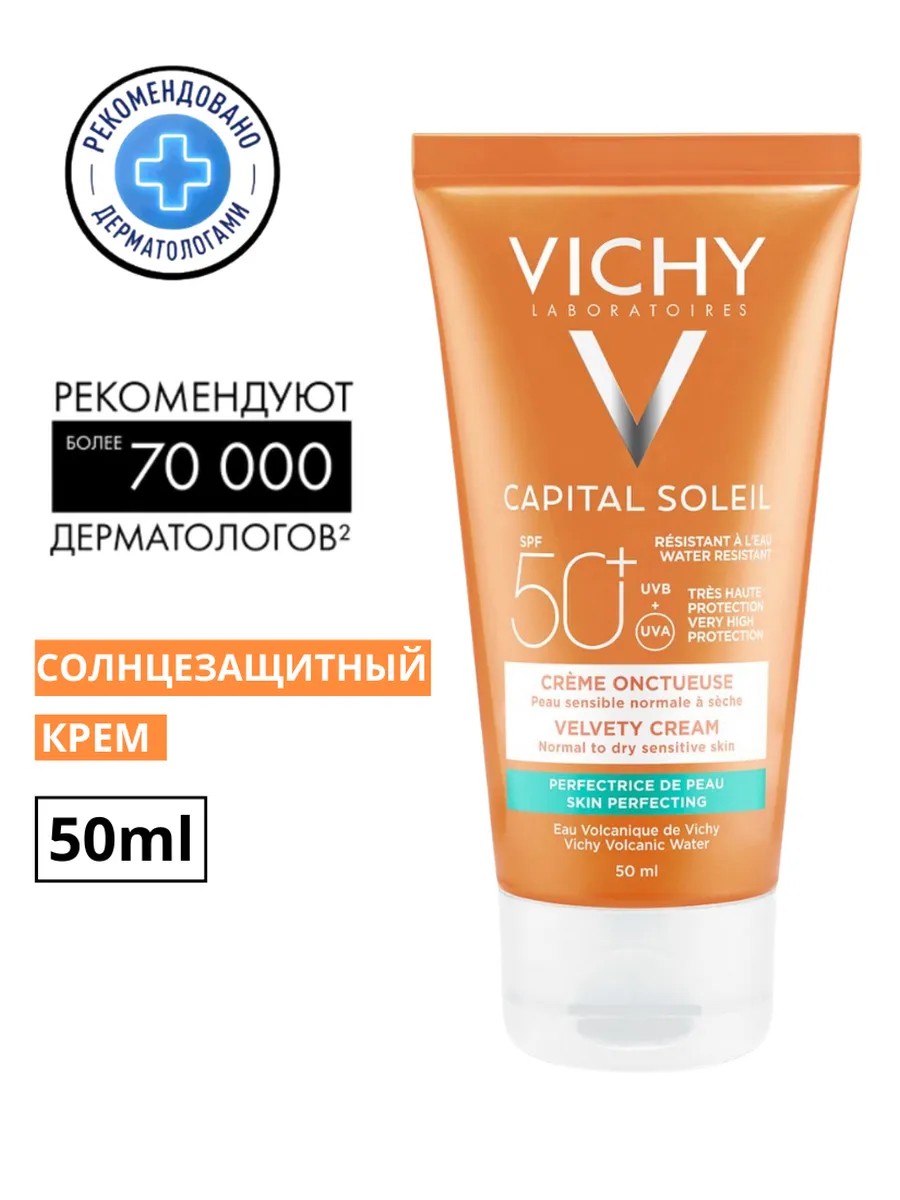 Солнцезащитная матирующая эмульсия Vichy Capital Soleil SPF 50 предназначена для надежной защиты кожи лица от UVA- и UVB-излучения.
