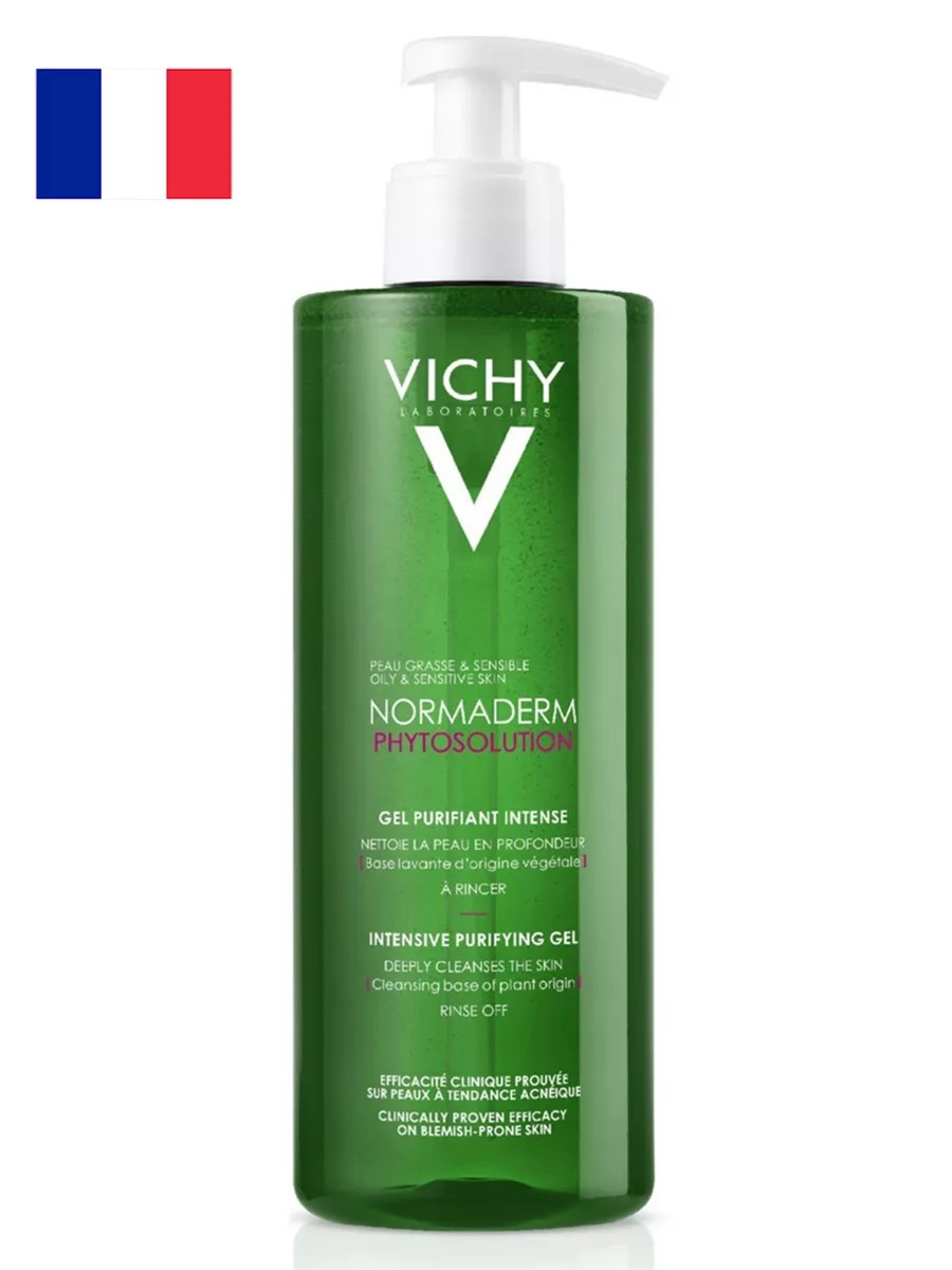 Discover Vichy Normaderm Phytosolution—an intensively cleansing gel wash specially formulated for problematic and oily skin. This unique product, made in France, will become your trusted companion in your daily facial care routine. Ideal for sensitive skin, it helps combat localized inflammation, a dull complexion, and enlarged pores. Every day, your skin is exposed to external factors, which can lead to increased oiliness and acne. Vichy Normaderm Phytosolution provides thorough cleansing, reducing sebum production and reducing the risk of breakouts. Its balanced formula, based on plant-based ingredients, not only prevents the formation of comedones but also visibly reduces pore size from the first use. The gel's key ingredients are salicylic acid and the probiotic Bifidus. Salicylic acid actively softens comedones, clears pores of excess sebum, and prevents the proliferation of acne-causing bacteria. The probiotic Bifidus strengthens the epidermis's protective properties, while trace elements promote sebum regulation and stimulate cell renewal. Thermal water, included in the formula, maintains hydration levels and restores a physiological pH of 5.5, making the product safe even for sensitive skin. Vichy Normaderm Phytosolution cleansing gel is soap- and sulfate-free, minimizing the risk of irritation and allergic reactions. It is hypoallergenic and non-comedogenic, allowing you to use it daily without worrying about your skin's condition. Massage the product onto a damp face until a light lather forms, and rinse with water. After use, you will experience an incredible feeling of cleanliness and freshness. Don't miss the opportunity to treat your skin to high-quality care with French Vichy cosmetics. Start your journey to perfect skin with Vichy Normaderm Phytosolution.