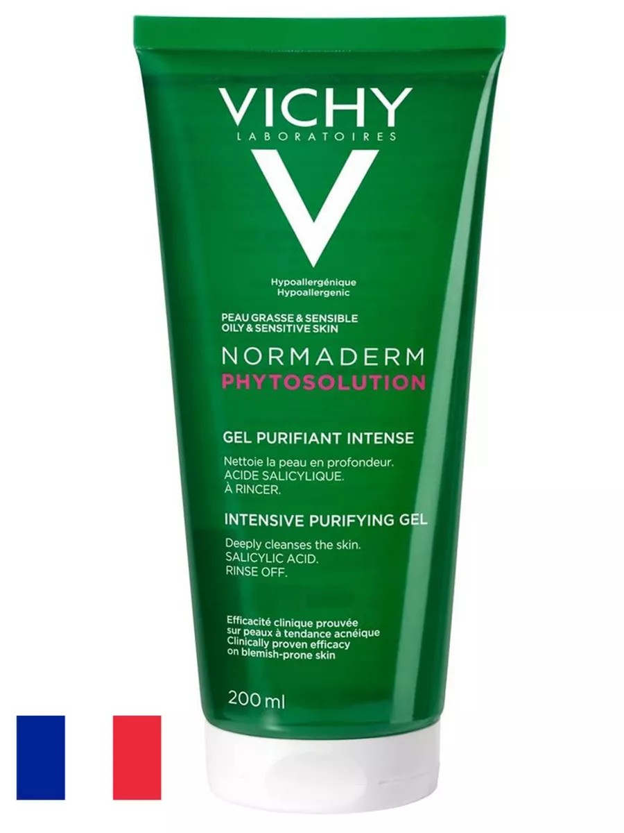 Discover Vichy Normaderm Phytosolution—an intensively cleansing gel wash specially formulated for problematic and oily skin. This unique product, made in France, will become your trusted companion in your daily facial care routine. Ideal for sensitive skin, it helps combat localized inflammation, a dull complexion, and enlarged pores. Every day, your skin is exposed to external factors, which can lead to increased oiliness and acne. Vichy Normaderm Phytosolution provides thorough cleansing, reducing sebum production and reducing the risk of breakouts. Its balanced formula, based on plant-based ingredients, not only prevents the formation of comedones but also visibly reduces pore size from the first use. The gel's key ingredients are salicylic acid and the probiotic Bifidus. Salicylic acid actively softens comedones, clears pores of excess sebum, and prevents the proliferation of acne-causing bacteria. The probiotic Bifidus strengthens the epidermis's protective properties, while trace elements promote sebum regulation and stimulate cell renewal. Thermal water, included in the formula, maintains hydration levels and restores a physiological pH of 5.5, making the product safe even for sensitive skin. Vichy Normaderm Phytosolution cleansing gel is soap- and sulfate-free, minimizing the risk of irritation and allergic reactions. It is hypoallergenic and non-comedogenic, allowing you to use it daily without worrying about your skin's condition. Massage the product onto a damp face until a light lather forms, and rinse with water. After use, you will experience an incredible feeling of cleanliness and freshness. Don't miss the opportunity to treat your skin to high-quality care with French Vichy cosmetics. Start your journey to perfect skin with Vichy Normaderm Phytosolution.