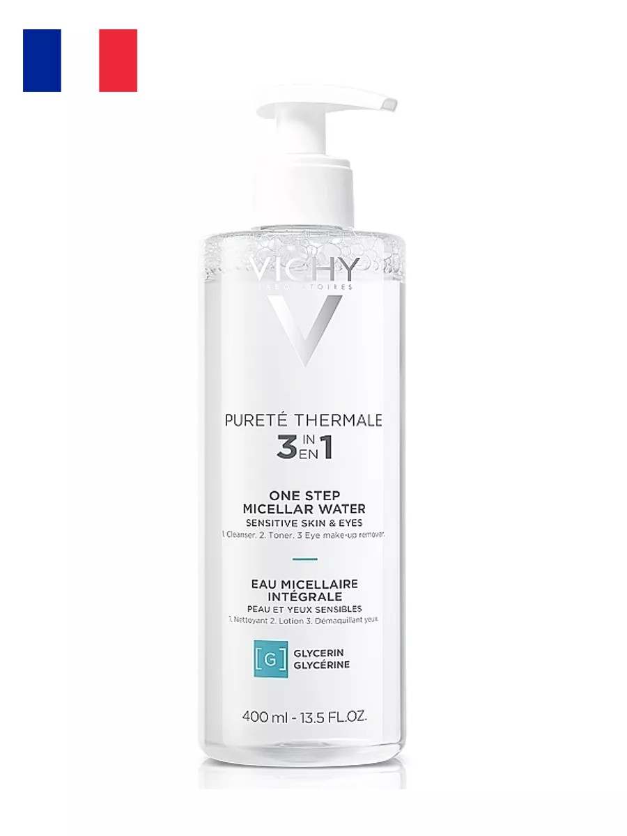Ищете идеальное средство для бережного очищения чувствительной кожи лица и вокруг глаз? Представляем вам универсальную мицеллярную воду 3в1 от известного французского бренда VICHY PURETE THERMALE. Этот продукт произведен во Франции и специально разработан для чувствительной кожи, прошедший дерматологические и офтальмологические тесты.Мицеллярная вода VICHY PURETE THERMALE легко и эффективно удаляет макияж и загрязнения с лица, глаз и губ, не вызывая чрезмерного трения и не оставляя ощущение стянутости кожи. Благодаря уникальной формуле с термальной водой Vichy, которая содержит множество минералов вулканического происхождения, ваша кожа станет более гладкой, мягкой и здоровой.Эта мицеллярная вода не содержит спирта, парабенов и отдушек, что делает ее идеальным выбором для чувствительной кожи. Она обладает гипоаллергенной формулой, содержит молочную кислоту, не оставляет ощущение стянутости и подходит для демакияжа в области глаз.Продукт освежает и тонизирует кожу, устраняет жирный блеск, глубоко очищает поры, препятствует образованию черных точек, сглаживает рельеф кожного покрова и дарит чувство комфорта. Дерматологически протестированная на жирной и комбинированной коже, эта мицеллярная вода поможет вашей коже выглядеть здоровой и ухоженной.Выбирайте качество и нежность для вашей кожи - выбирайте VICHY PURETE THERMALE Мицеллярную воду универсальную 3в1.