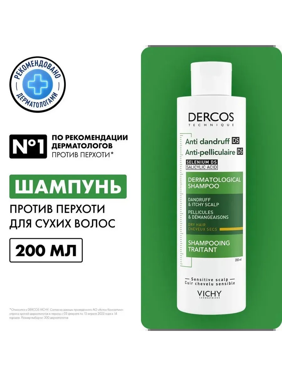 Шампунь Dercos DS от Vichy – идеальное решение для тех, кто страдает от перхоти и ищет эффективный уход за сухими волосами.