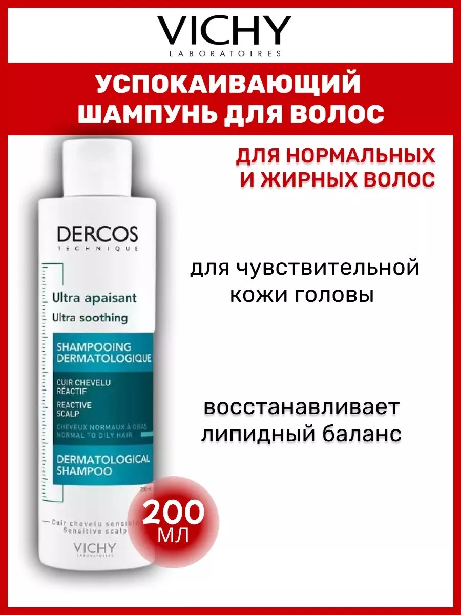 Виши (Vichy, Dercos) Успокаивающий шампунь-уход без сульфатов для нормальных и жирных волос