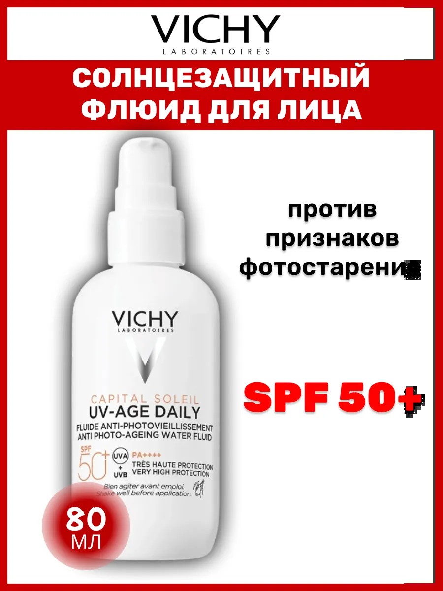 VICHY CAPITAL SOLEIL UV-AGE DAILY Невесомый солнцезащитный флюид для лица против признаков фотостарения SPF 50+ 80 мл