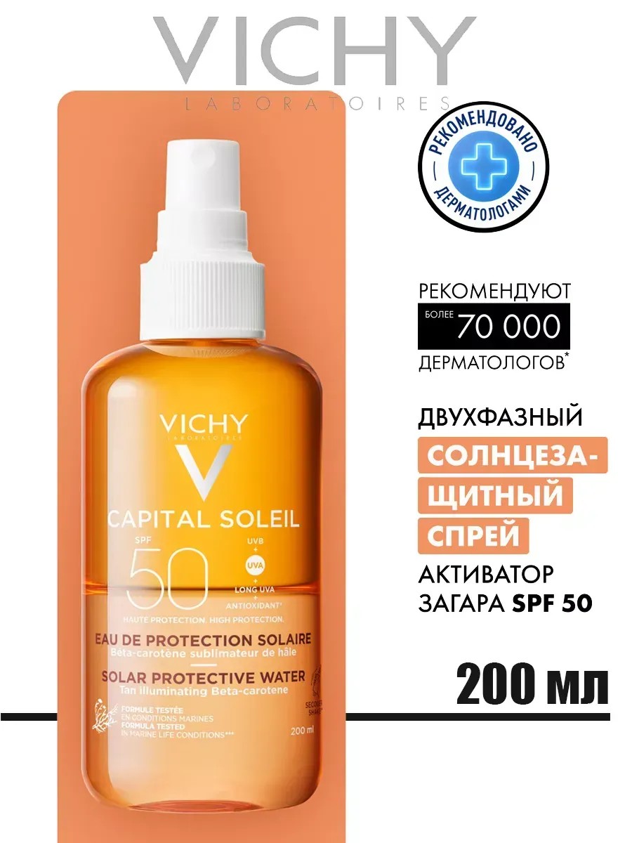 Представляем инновационное средство от Vichy – солнцезащитную воду с очень высокой защитой SPF50. Эта уникальная двухфазная формула объединяет передовые технологии защиты от UVA и UVB лучей с активными компонентами, которые способствуют натуральному и равномерному загару.