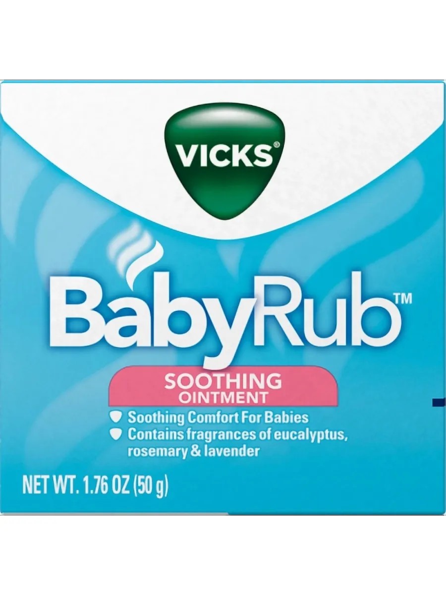 Vicks BabyRub contains aromatic scents of eucalyptus, rosemary, and lavender.