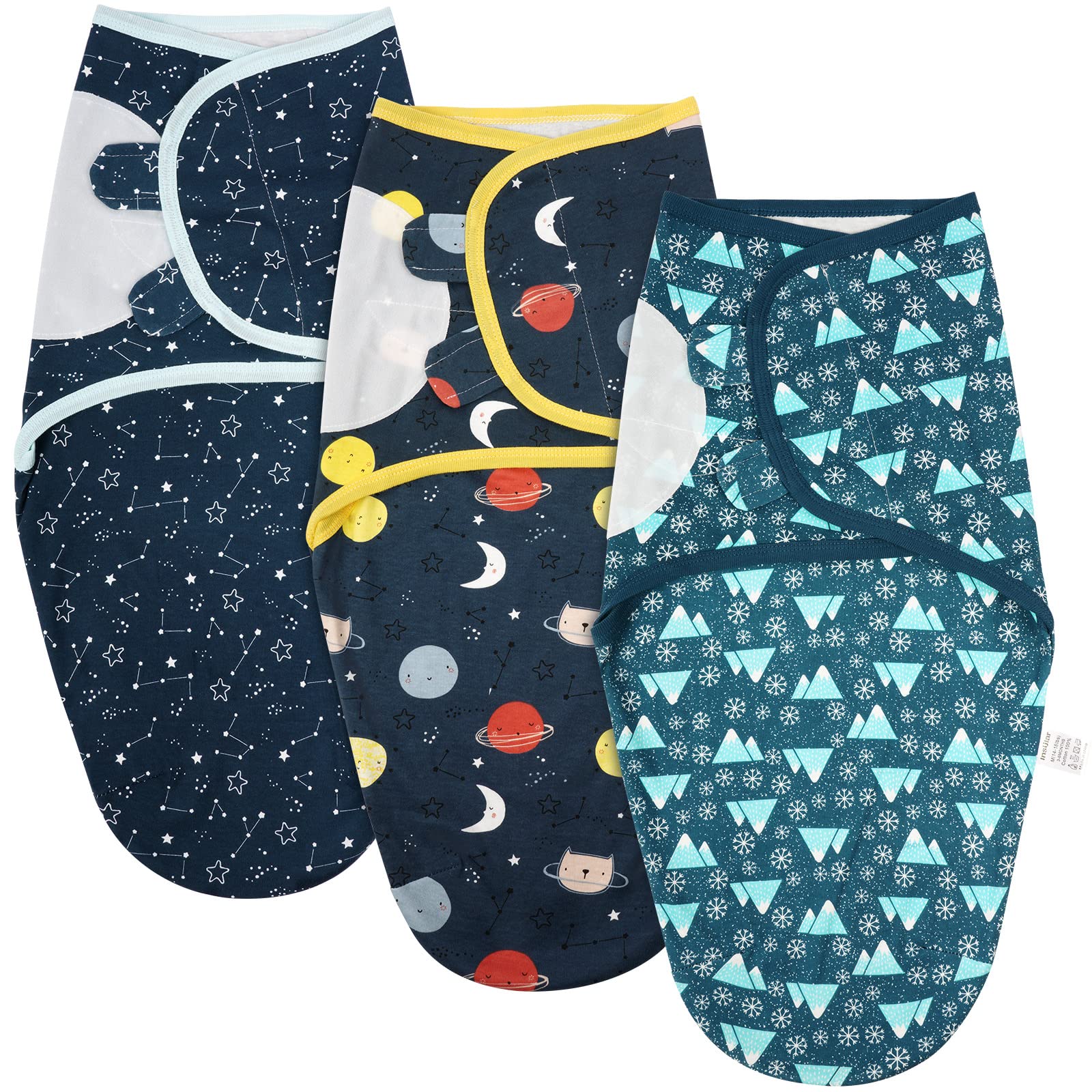 Perfect Gift - Swaddling is stylish and functional, making it the perfect gift for expecting or new moms and baby showers. Unisex boy and girl swaddles are the perfect gift for a baby shower that every parent will love!. Enhanced Sleep - The swaddling blanket comfortably wraps the baby, providing a comfortable night's sleep and all-day sleep without stressing the baby. For parents, it also means better sleep. Easy to use and adjust - Velcro design. They adapt quickly and easily to your baby's size, so you can rest assured that even the most wiggly baby will wrap effortlessly, keeping your little one feeling safe and secure. 3-Pack - Includes 3 Baby swaddle blankets, bright colors and cute little patterns make them perfect for boys and girls. Suitable for babies from 3 to 6 months. Soft and Breathable - Our swaddle bag is made of lightweight, breathable 100% pure cotton, so your newborn will be perfectly wrapped, comfortable and asleep. Soft and snug fit, won't scratch your baby's delicate skin.