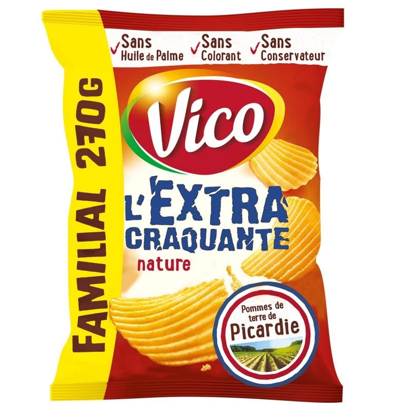 VICO. VICO EXTRA CRUNCHY PLAIN CHIPS FAMILY SIZE 270G. Chips. For aperitifs. Savory groceries.VICO. VICO CHIPS EXTRA CRAQUANTES NATURE FORMAT FAMILIAL 270G. Chips. Pour l'apéritif. Epicerie salée.