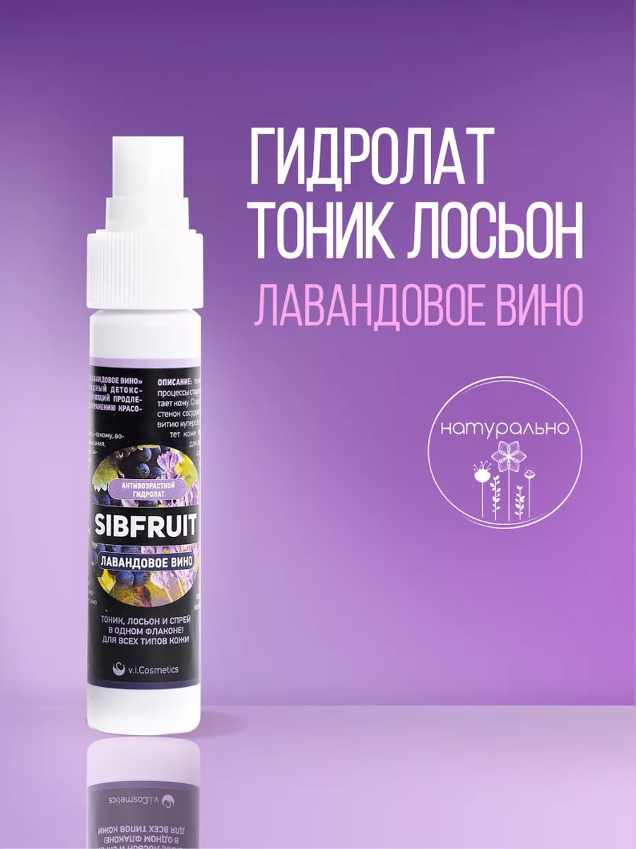 Lavender wine made from Cabernet Sauvignon grapes and lavender flowers from VI Cosmetics helps prolong the youthful appearance of the face. This comprehensive face, body, and hair treatment comes in a compact format and convenient spray, making it perfect for travel and use on long flights. As a daily hair care product, it protects from sun rays, strengthens roots, and restores hair along its entire length, imparting healthy shine, lightness, and silkiness. This moisturizing lotion tones the skin, slows the aging process, hydrates and nourishes, strengthens blood vessel walls, and prevents the development of rosacea. This rejuvenating alcohol-free hydrosol is infused with valuable plant components during distillation: essential oils, vitamins, bioflavonoids, and acids, providing unparalleled care. This cleansing anti-aging spray with a detox complex has an antibacterial and anti-inflammatory effect, slows the aging process, soothes irritated and sensitive skin, and protects the body from UV radiation. Its natural ingredients combat imperfections. The toner reduces inflammation and irritation, tightens pores, has a whitening effect, lightens freckles, and eliminates pigmentation on the face. APPLICATION: Spray onto skin and hair without rinsing. Can be used before applying other cosmetics, going outside, or applying makeup. Natural skincare products from viCosmetics use only natural recipes and innovative formulas, maintaining the highest quality of their skincare products, so everyone can reveal their natural beauty and maintain their youth. Visit our store and try our peptide eye serum for activating eyelash and eyebrow growth, and our Herbal+ active hydrant with hyaluronic acid for a fresh look, even after long trips.