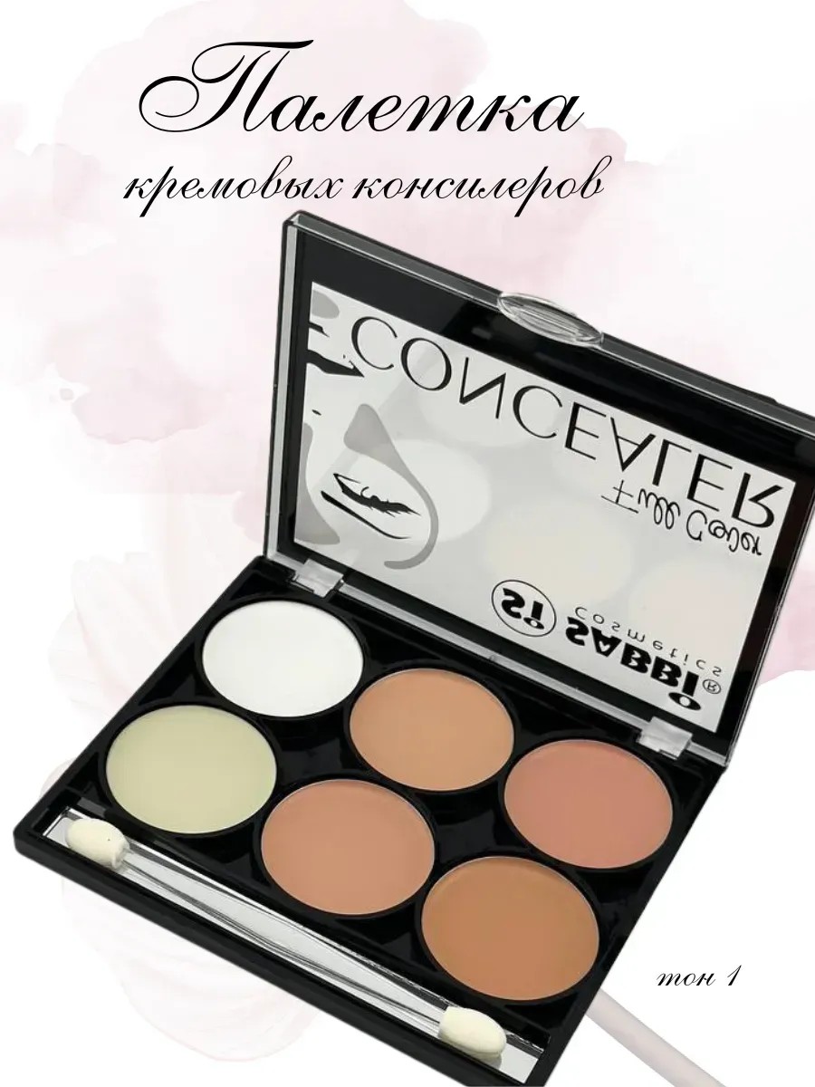 Универсальная палитра: Содержит 6 оттенков кремовых консилеров, подобранных для решения различных задач.