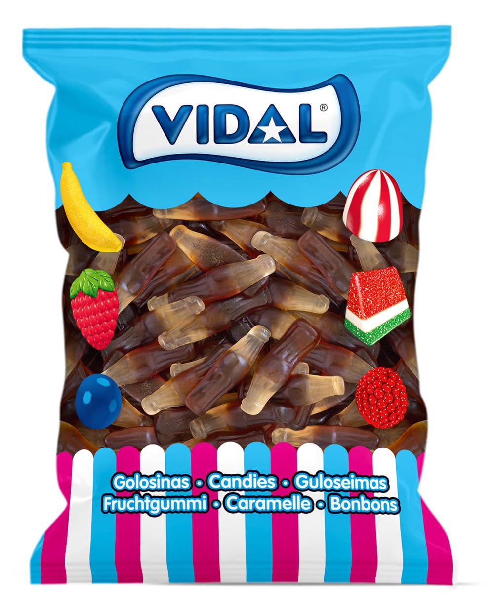 Enjoy Vidal Golosinas' Cola Jelly Bottles, bottle-shaped candies with a truly authentic cola flavor that wins you over from the first bite. Their glossy, gelatinous texture makes them ideal for dessert tables, candy bars, or as a nostalgic snack. This product comes in a 1 kg bag, containing approximately 143 individual pieces, making it a convenient size for home use, retail stores, and bulk orders. It is gluten-free and fat-free, making it suitable for consumers with certain dietary restrictions. With the quality guarantee of Vidal Golosinas, a brand with a long tradition in the world of Spanish confectionery, each piece delivers an intense taste, colorful presentation, and a surprising texture. Perfect for sharing, gifting, or enjoying anytime. INGREDIENTS Glucose syrup, sugar, gelatin acidifier: citric acid, flavorings, vegetable oils (palm) Coating agent: carnauba wax, beeswax, colorants: E150a. INSTRUCTIONS FOR USE Enjoy these fun bottle-shaped, cola-flavored treats. Be careful when eating them, as their shape may present a choking hazard. SAFETY WARNING Not suitable for children under 3 years. May contain traces of milk. See moreBouteilles Cola VIDAL Sac 1 kgDESCRIPTION DU PRODUIT DESCRIPTION DU PRODUIT Profitez des bouteilles Cola Jelly de Vidal Friandises, des bonbons en forme de bouteille et une véritable saveur de cola qui conquiert dès la première bouchée. Leur texture gélatineuse et brillante les rend idéales pour les tables sucrées, les bars à bonbons ou comme snack nostalgique. Ce produit est livré dans un sac de 1 kg, avec environ 143 unités individuelles, ce qui en fait un format pratique pour un usage domestique et pour les mags et les commandes en gros. Il est sans gluten et sans graisse, ce qui le rend adapté aux consommateurs avec certaines restrictions alimentaires. Avec la garantie de qualité de Vidal Golosinas, marque avec tradition dans le monde de la confiserie espagnole, chaque pièce apporte un goût intense, une présentation colorée et une texture qui surprend. Parfait pour partager, offrir ou profiter à tout moment. INGRÉDIENTS Sirop de glucose, sucre, gélatine acidifiant : acide citrique, arômes, huiles végétales (palme) agent de revêtement : cire de carnauba, cire d'abeille, colorants : E150a. MODE D'EMPLOI Profitez de ces friandises amusantes en forme de bouteille et saveur de cola. Soyez prudent lorsque vous les consommez, car leur forme peut présenter un risque d'étouffement. AVERTISSEMENT DE SÉCURITÉ Ne convient pas aux enfants de moins de 3 ans. Peut contenir des races de lait. Voir plus