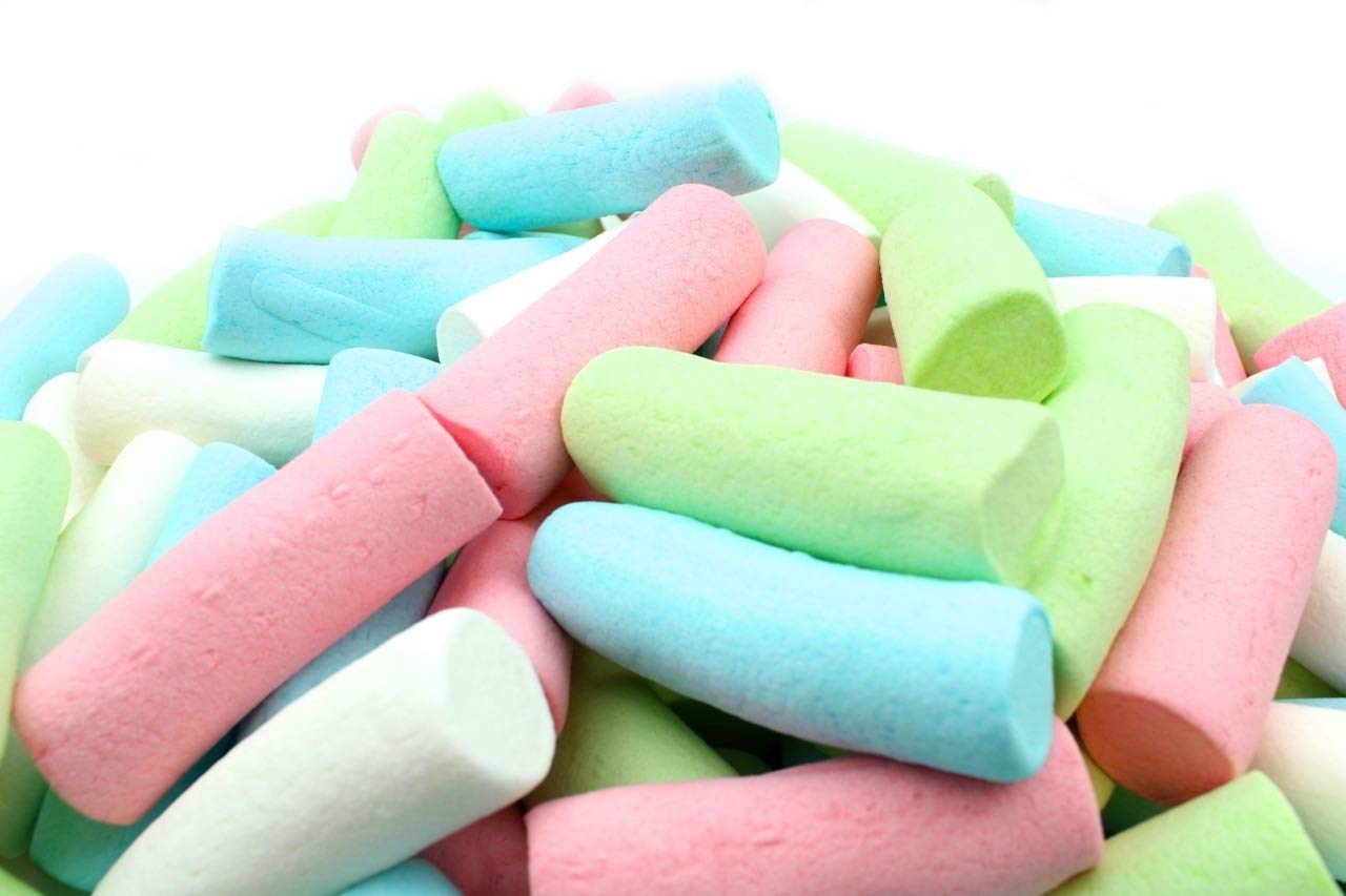 Vidal Dulcinubes de Colores DolciNuvole Colorate. Dimensions : 20 x 65 mm (width x length). Gluten-free, lactose-free and derivative-free, salt-free and nut-free. Bag of 850 g (approx. 125 pieces). Vidal Marshmallow Tube colored (blue, pink, white and green).