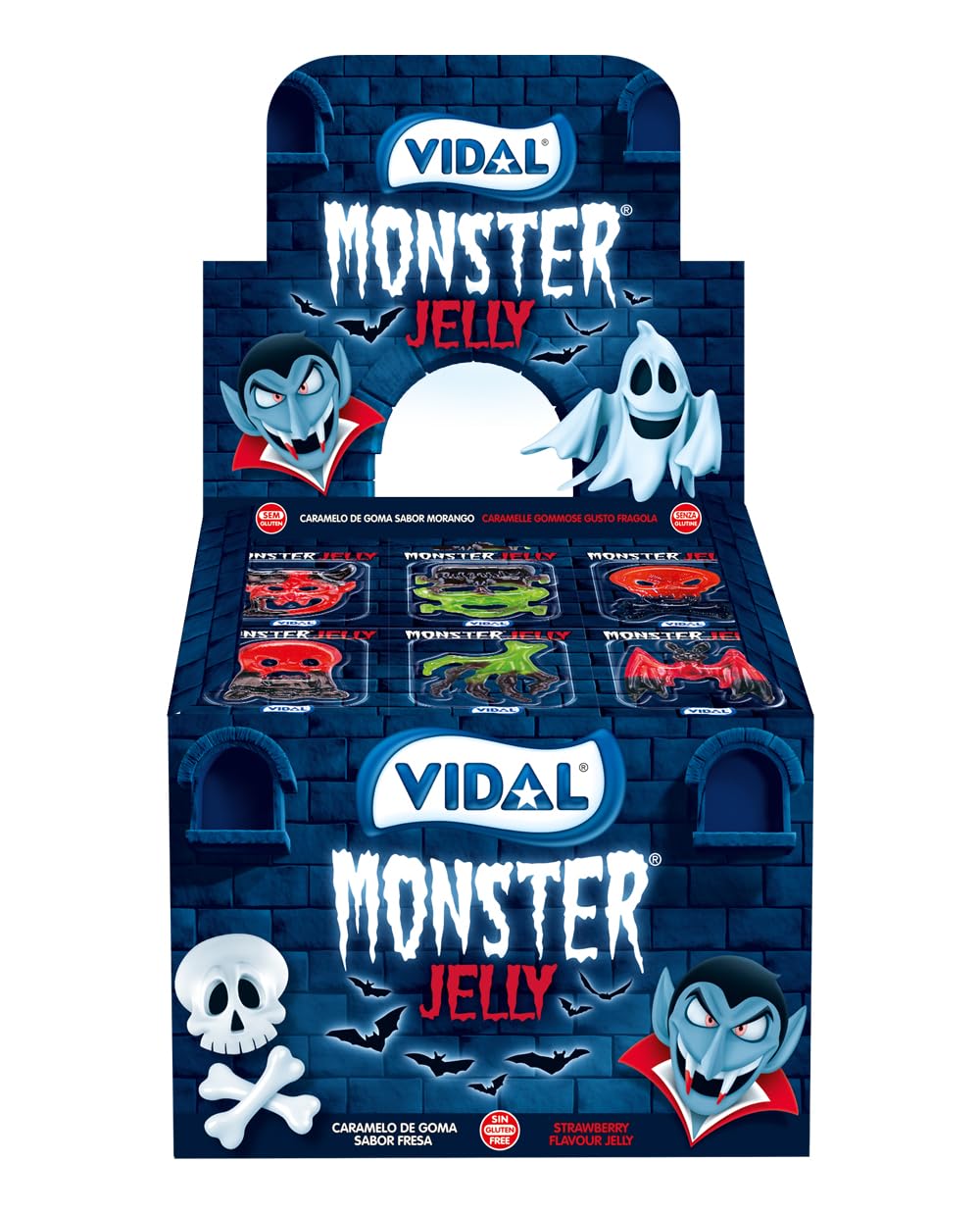 Make your celebrations unforgettable with Monster Jelly from Vidal Sweets. This box contains 66 spooky-shaped candies such as zombies, skulls, ghosts, bats, and devils, perfect for adding a themed touch to parties, Halloween, or children's events. Each figure is carefully crafted and has an intense strawberry flavor that will delight children and adults alike. Weighing 495g, this size is ideal for handing out or decorating candy bars. It's also gluten-free and fat-free, making it suitable for people with special dietary needs. The reusable hard case is a bonus: once the treats are gone, it can be used as a mold for play with modeling clay or sand. A fun, functional, and original way to stand out in your candy selection. INSTRUCTIONS The product contains 66 pieces. It is suitable for children aged 3 to 12 years. Caution: This product is heat-sensitive and may melt or change texture if exposed to high temperatures. Its gelatinous texture may present a choking hazard if not consumed carefully. The product has a strawberry flavor and is made of chewable gum. To fully enjoy the product, it is recommended to chew it slowly and swallow only after it has been completely chewed.Vidal Bonbons - Monster Jelly Coffret 66 pièces Bonbons en forme de monstres saveur fraise Sans gluten Trousse réutilisable Halloween et fêtesDESCRIPTION DU PRODUIT DESCRIPTION DU PRODUIT Faites de vos célébrations une expérience inoubliable avec Monster Jelly de Vidal Friandises. Ce coffret contient 66 bonbons aux formes effrayantes telles que des zombies, des crânes, des fantômes, des chauves-souris et des diables, parfaites pour ajouter une touche thématique aux fêtes, Halloween ou événements pour enfants. Chaque figurine est soigneusement conçue et a une saveur intense de fraise qui ravira les enfants et les adultes. Avec un poids total de 495 g, ce format est idéal pour distribuer ou décorer des candy bars. En outre, c'est un produit sans gluten et sans graisse, il convient donc aux personnes ayant des besoins alimentaires spéciaux. Son étui rigide réutilisable est une valeur ajoutée : une fois les friandises consommées, il peut être utilisé comme moule de jeu avec de la pâte à modeler ou du sable. Une option originale, amusante et fonctionnelle pour se démarquer dans votre catalogue de friandises. MODE D'EMPLOI Le produit contient 66 pièces. Il convient aux enfants âgés de 3 à 12 ans. Attention, le produit est sensible à la chaleur et peut fondre ou changer de texture s'il est exposé à des températures élevées. La texture gélatineuse du produit peut présenter un risque d'étouffement s'il n'est pas consommé avec soin. Le produit a un goût de fraise et est composé de gommes à mâcher. Pour profiter pleinement du produit, il est recommandé de le mâcher lentement et de l'avaler seulement après l'avoir mâché complètement.