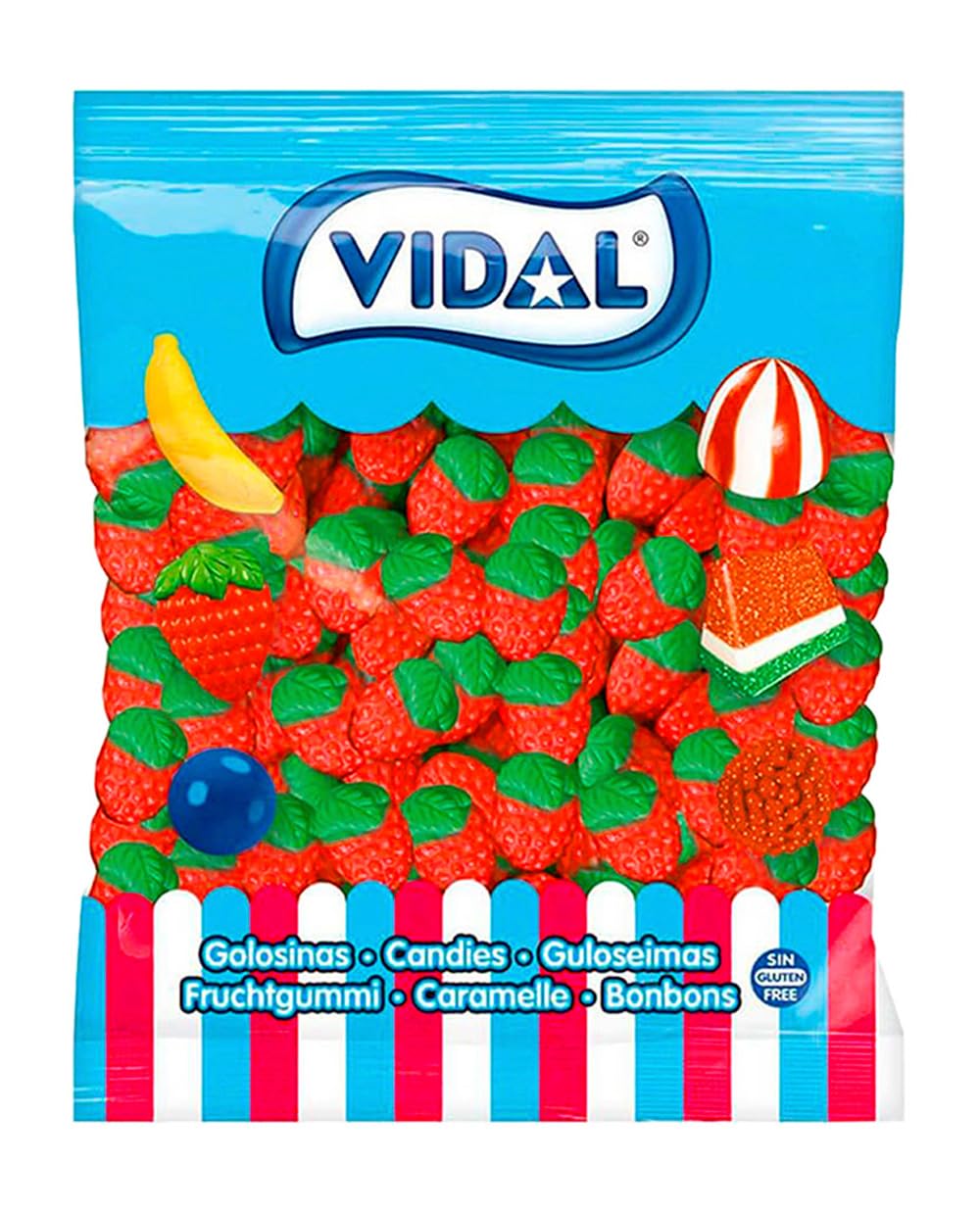 : Strawberries from the Forest of Sweets. A classic gummy candy with Vidal's irresistible touch. Size: 1 kg bag. INGREDIENTS Glucose syrup, sugar, corn starch, gelatin acid: citric acid, flavorings, vegetable oils (palm) glazing agents: carnauba wax, beeswax, colors: E102, E129, E133. E102, E129: may have an adverse effect on activity and attention in children. INSTRUCTIONS FOR USE Consume in moderation. Do not expose to high temperatures. Suitable for all ages. See more