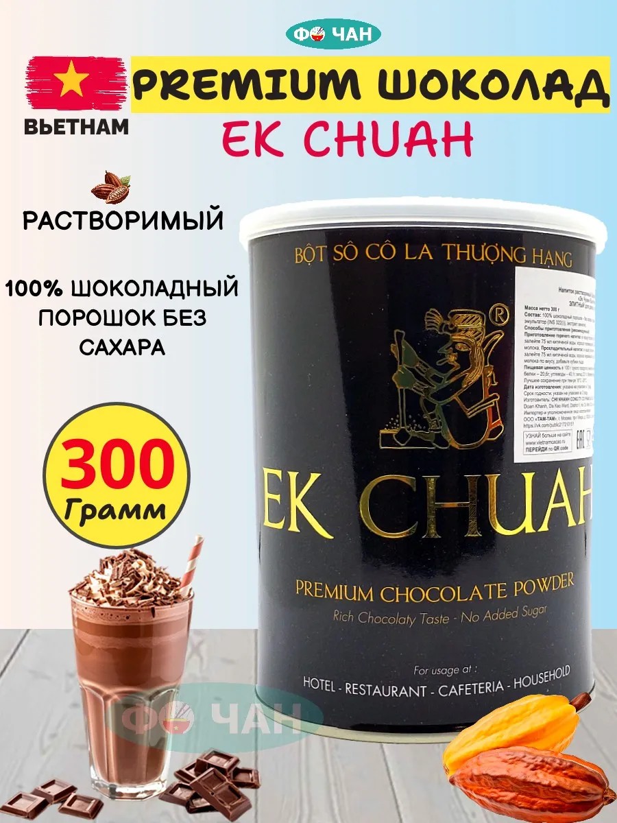 Шоколадный порошок Ek Chuah — продукт премиум-класса, названный в честь майяского божества торговли, насчитывающей более 2000 лет. Это также символ какао, известный по-гречески как «Theobroma Cacao», что означает «пища богов». Шоколадный порошок Ek Chuah состоит из 100% чистого шоколадного порошка без сахара, в том числе какао-порошок, какао-масса, эмульгатор соевый лецитин, натуральный ароматизатор ваниль. Он может содержать очень небольшое количество молочных ингредиентов. Порошок Ek Chuah поставляется в упаковке по 300 г. пригоден для питья и содержит множество полезных компонентов для здоровья. Шоколадный порошок Ek Chuah помогает снизить риск сердечных заболеваний до 35% благодаря своему содержание шоколада, особенно темного шоколада, который имеет высокий уровень антиоксидантов. Это благотворно влияет на сердечно-сосудистую систему, улучшает кровообращение, снижает кровяное давление и способствует расслаблению. Шоколадный порошок Ek Chuah может предотвратить развитие диабета, как шоколад повышает чувствительность к инсулину. Людям с диабетом можно употреблять небольшое количество чистого шоколад или темный шоколад, чтобы замедлить прогрессирование заболевания. Кроме того, шоколад в порошке Ek Chuah стимулирует выработку серотонина, антидепрессивное химическое вещество в мозге, улучшающее настроение, снимающее стресс и усиливающее фокус.