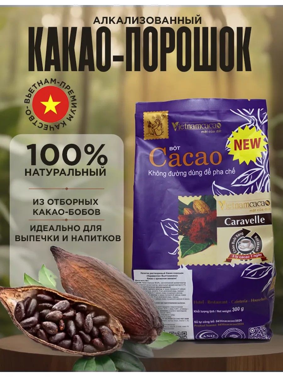 Какао порошок Вьетнам алкализованный Caravella 300 г