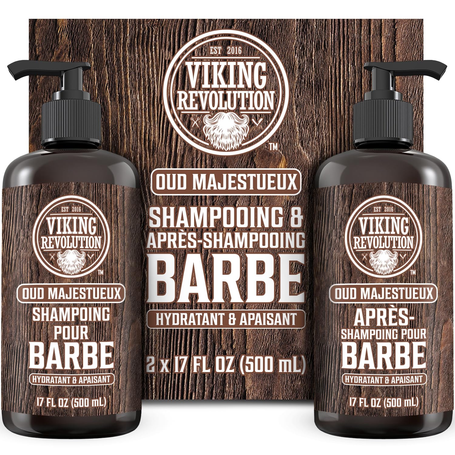 Viking Revolution - Shampoing Barbe Homme & Apr s Shampoing Barbe Homme - Huile d'Argan & de Jojoba - Adoucit & Renforce - Oud Majestueux - 500 ml x 2 500 ml (Lot de 2)
