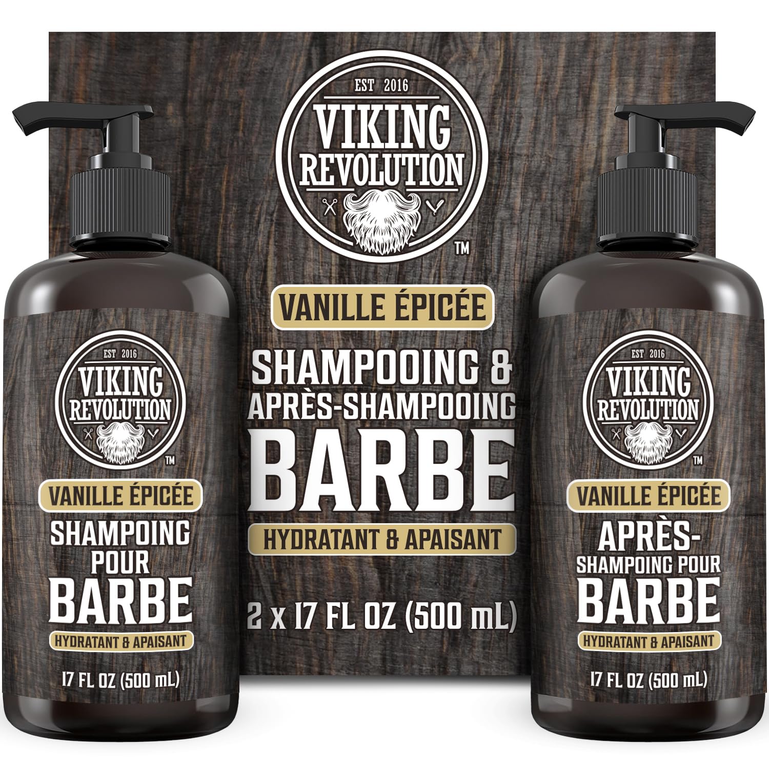 Viking Revolution - Shampoing Barbe Homme & Apr s Shampoing Barbe Homme - Huile d'Argan & de Jojoba - Adoucit & Renforce - Vanille pic e - 500 ml x 2 500 ml (Lot de 2)