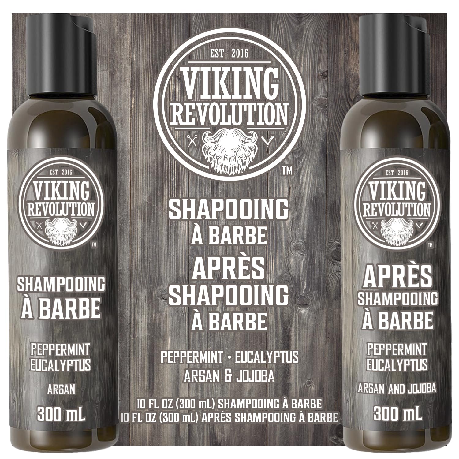 The Viking Promise: If for any reason you're not completely satisfied, simply contact us so we can make it right. Contains Natural Beard Oil: The beard care products in this set are made with our finest beard oil to provide the most intense hydration and best possible beard growth. Lather Up: Our beard wash set deeply cleanses and nourishes. With just a little beard shampoo in your hand, add water, massage into your beard, and the rich lather does the rest. No Itching or Irritation: Say goodbye to itchy, irritated skin and beard dandruff. Wash and condition your beard for an amazing look and feel. Premium Beard Kit: Formulated to promote healthy beard growth, this beard shampoo and conditioner kit moisturizes, cleanses, and softens, restoring shine and vitality to your beard.La Promesse Viking : Si pour une raison, quelqu'elle soit, vous n'étiez pas entièrement satisfait, il vous suffit de nous contacter afin que nous puissions y remédier y remédier. Contient de l'Huile Naturelle pour Barbe : Les soins pour la barbe de cet ensemble sont fabriqués avec notre meilleure huile de barbe pour vous offrir l'hydratation la plus intense et une meilleure croissance de barbe possible. Faire Mousser : Notre set de lavage pour barbe nettoie et nourrit en profondeur. Avec juste un peu de shampoing à barbe dans votre main, ajoutez de l'eau, massez votre barbe et la mousse riche fait le reste. Pas de Démangeaisons ni d'Irritations : Dites adieu aux démangeaisons et à la peau irritée et débarrassez-vous des pellicules de barbe. Lavez et revitalisez votre barbe pour un look et une sensation incroyables. Kit Haut de Gamme pour Barbe : Formulé pour favoriser une croissance saine de la barbe, ce kit de shampoing et après-shampoing pour barbe hydrate, nettoie et adoucit, redonnant brillance et vitalité à votre barbe.Viking Revolution - Shampoing Barbe Homme Après Shampooing Barbe Homme - Huile d'Argan de Jojoba - Adoucit Renforce - Parfum Menthe Poivrée Eucalyptus - 300 ml x 2 300 ml (Lot de 2)