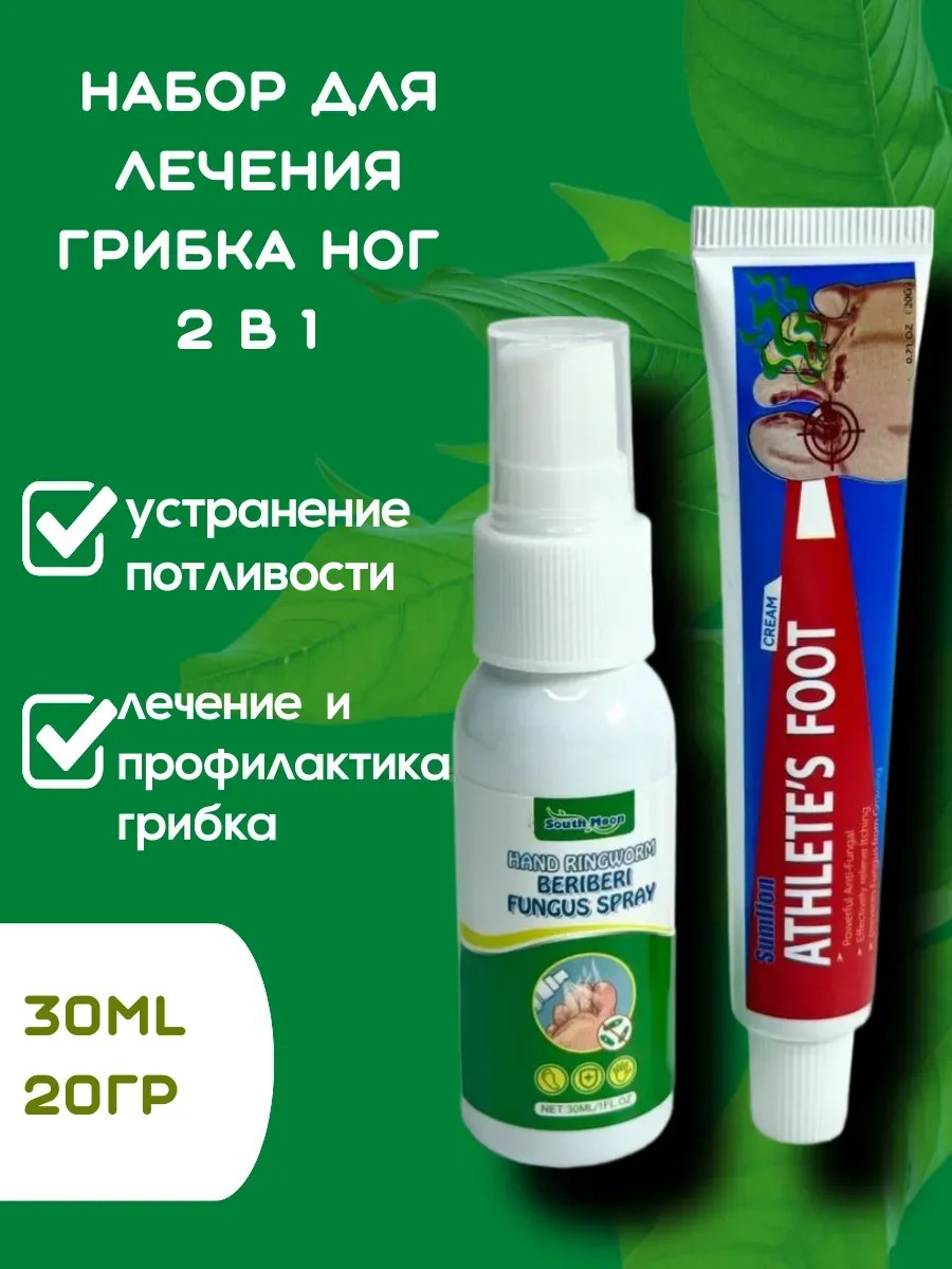 | Комплектация | 1шт.спрей для лечения потливости ног,1шт.крем для лечения грибка стоп |