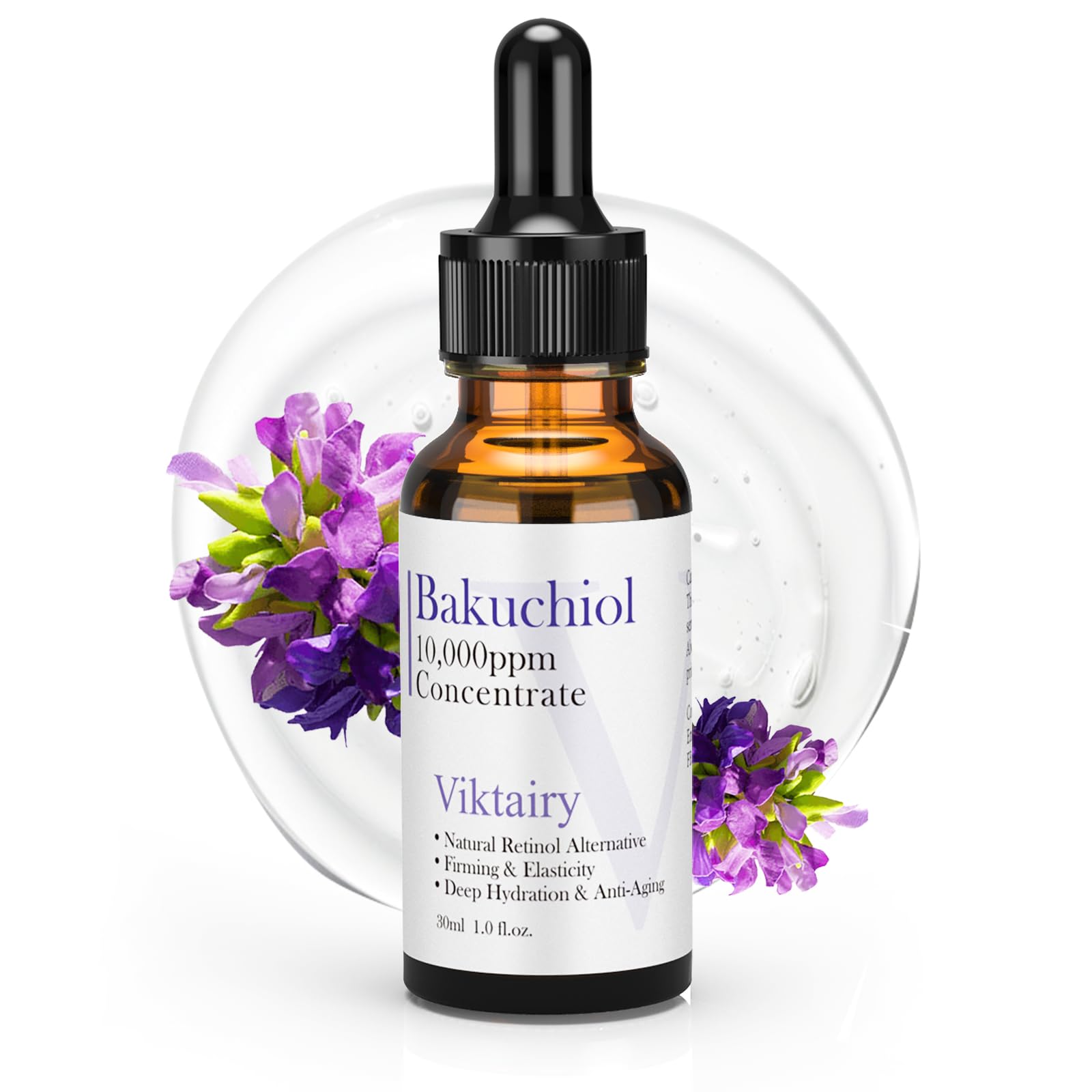 Viktairy Bakuchiol Serum Concentrate High-Potency Mix-In Bakuchiol Oil Serum Gentle Retinol Alternative for Wrinkle Reduction Hydrating & Firming Anti-Aging Skincare Vegan Non-GMO 30ml 10 000ppm