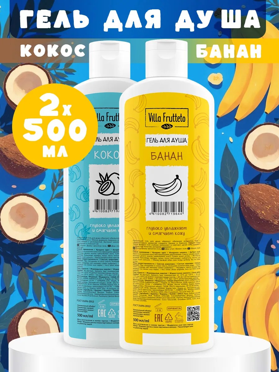 Гель для душа увлажняющий Банан, Кокос 500 мл 2 шт