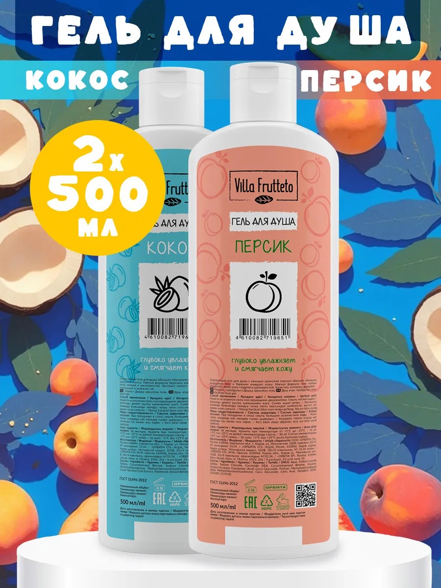 Универсальный женский гель для душа с ароматом Персик и Кококс Villa Frutteto. Вложение 2 ШТ. Гель порадует Вас ароматной пеной и любимым запахом Кокоса или Персика во время водных процедур. В состав средства для мытья рук, ног и тела входят смягчающие компоненты, который оказывает питательный эффект и способствует интенсивному смягчению кожи и возвращению ей упругости. После купания кожа приобретает сияющий вид и надолго сохраняет ощущение чистоты и свежести. Жидкое косметическое средство для душа подходит для взрослых женщин, девушек, мужчин и подростков с нормальной, жирной и сухой кожей. Гель для душа можно использовать в душе, ванной, сауне или бане. Ароматный гель поможет создать атмосферу романтики с любимым человеком. Красивый флакон можно добавить в подарочный набор с другими средствами красоты для женщин, завернуть в красивую упаковку и подарить на день рождения подруге, коллеге, сестре, бабушке, маме, тете или другому члену семьи и близкому человеку. У нас есть акции и распродажи, вы можете купить наши товары в подарок со скидкой!