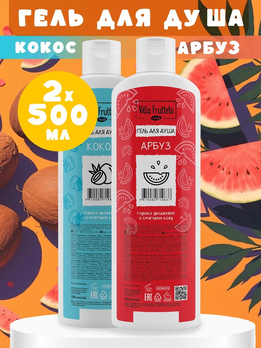 Гель для душа увлажняющий Арбуз, Кокос 500 мл 2 шт