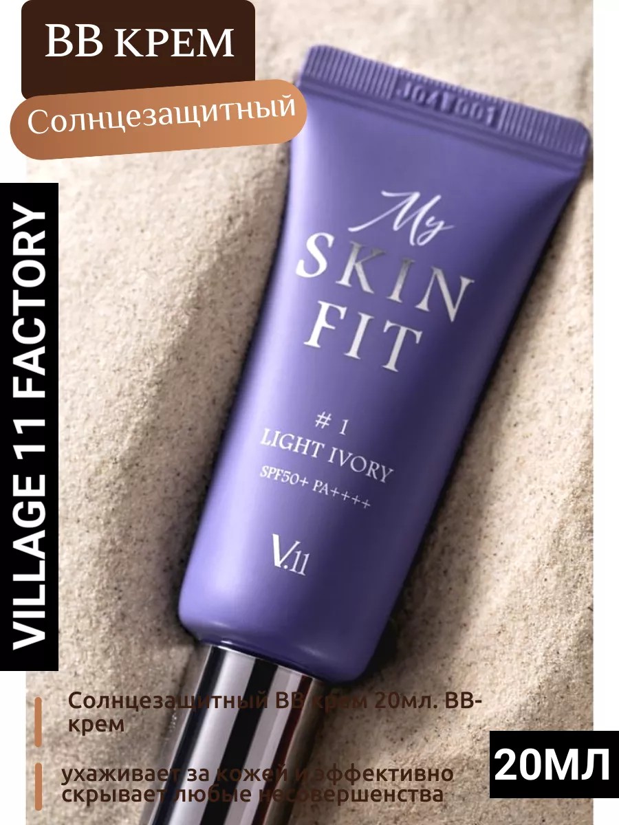 VILLAGE 11 FACTORY MY SKIN FIT BB CREAM #3 LIGHT BEIGE Солнцезащитный BB крем 20мл.BB-крем SPF 50 в светло-бежевом оттенке. За счет входящих в состав 11 уникальных растительных компонентов, экстракта центеллы азиатской, пантенола и гиалуроновой кислоты, средство выравнивает цвет и микрорельеф лица, маскирует незначительные недостатки и неровности. Крем создаёт естественное сияние, усиливает защитные свойства эпидермиса, делает его менее восприимчивым к агрессивному внешнему воздействию факторов окружающей среды.Способ применения: нанесите необходимое количество средства на кожу лица, аккуратно растушуйте при помощи кисти, спонжа или подушечек пальцев.Состав:Water, Titanium Dioxide (CI 77891), Dimethicone, Phenyl Trimethicone, Homosalate, Butylene Glycol, Butylene Glycol Dicaprylate/Dicaprate, Dipropylene Glycol, Phenylbenzimidazole Sulfonic Acid, Lauryl PEG-8 Dimethicone, Diethylamino Hydroxybenzoyl Hexyl Benzoate, Niacinamide, PEG-10 Dimethicone, Tromethamine, Disteardimonium Hectorite, Glycerin, Magnesium Sulfate, Cetyl PEG/PPG-10/1 Dimethicone, Iron Oxides (CI 77492), Aluminum Hydroxide, Iron Oxides (CI 77491), Triethoxycaprylylsilane, Stearic Acid, Sodium Benzoate, Alumina, Potassium Sorbate, Xanthan Gum, Iron Oxides (CI 77499), Panthenol, Trisodium Ethylenediamine Disuccinate, Ethylhexylglycerin, Adenosine, Adansonia Digitata Seed Extract, Hamamelis Virginiana (Witch Hazel) Leaf Extract, Lavandula Angustifolia (Lavender) Flower Extract, Cetraria Islandica Extract, Fucus Vesiculosus Extract, Glycyrrhiza Uralensis (Licorice) Root Extract, Gelidium Cartilagineum Extract, Himanthalia Elongata Extract, Laminaria Japonica Extract, Myrciaria Dubia Fruit Extract