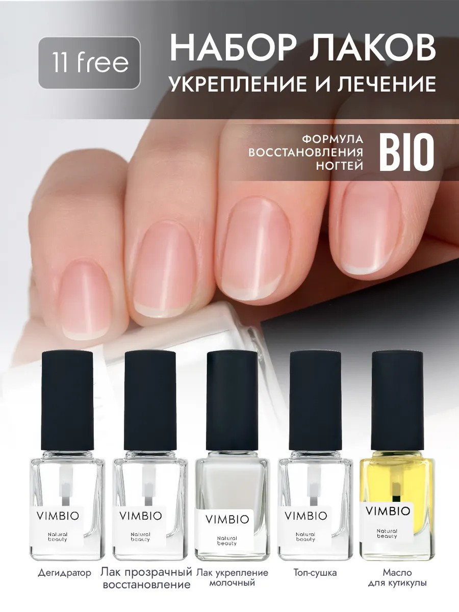 VIMBIO Beauty набор безопасных 11 Free лаков «УКРЕПЛЕНИЕ И УХОД» - полный курс в нашей инновационной Двухэтапной системе восстановления ногтей в домашних условиях. Набор создан для тех, кто ценит здоровые ногти, безопасность и стойкое покрытие.