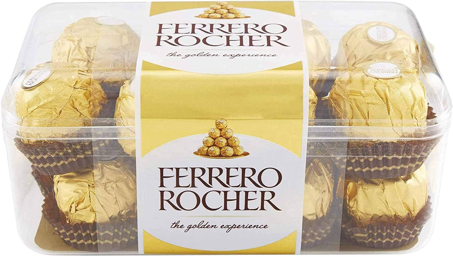 With its whole hazelnut encased in milk chocolate and nut crunch, the Ferrero Rocher chocolate box offers a delicious taste experience thanks to its unique combination of layers and textures. A whole hazelnut surrounded by delicious layers of crispy wafer, a velvety filling, smooth milk chocolate, and finely chopped hazelnut pieces. Celebrate the moment with Ferrero Rocher. INGREDIENTS Milk chocolate 30 (sugar, cocoa butter, cocoa mass, skimmed milk powder, concentrated butter, emulsifier: lecithin (soy), vanillin), hazelnuts (28.5 ), sugar, palm oil, wheat flour, whey powder (milk), reduced cocoa, emulsifier: lecithin (soy), raising agent (soy), sodium bicarbonate, salt, vanillinFerrero Rocher Lot de 16 chocolats en boîte 200 gDESCRIPTION DU PRODUIT DESCRIPTION DU PRODUIT Noisette entière en chocolat au lait et croquante aux noix, boîte de chocolat Ferrero Rocher offre une expérience gustative délicieuse grâce à sa combinaison unique de couches et de textures. Une noisette entière entourée de délicieuses couches de gaufrette croustillante, un remplissage velouté, un chocolat au lait lisse et des morceaux de noisette finement hachés. Célébrez le moment avec Ferrero Rocher INGRÉDIENTS Chocolat au lait 30 (sucre, beurre de cacao, masse de cacao, lait écrémé en poudre, beurre concentré, émulsifiant : lécithine (soja), vanilline), noisettes (28,5 ), sucre, huile de palme, farine de blé, poudre de lactosérum (lait), cacao réduit, émulsifiant : lécithine (soja), agent élévateur (soja) Bicar de sodium bonate), sel, vanilline