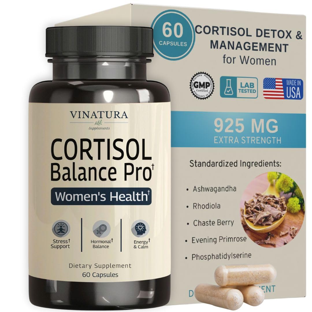 VINATURA Cortisol Supplements for Women - Cortisol Detox and Management - Adrenal Support Stress Support 60 Vegan Capsules