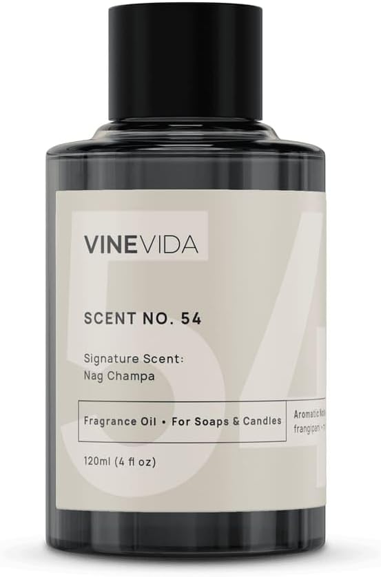 VINEVIDA Nag Champa Fragrance Oil For Soap Making, Candle Making, Perfume, Diffusers, Lotion, Home Scents, Linen Spray, Bath Bombs - Large Bottle of Fragrance Oil in Bulk - 4ozABOUT THIS SCENT - NAG CHAMPA is a luxurious fragrance that is a perfect Fall/Winter scent. This scent has top notes of frangipani, mid notes of patchouli, wood, orange, and bottom notes of sugar, musk, sandalwood, vanilla, forming the most elegant nag champa scent. LUXURIOUS SCENT - VINEVIDA fragrances are made using the best ingredients possible. By using essential oils and other raw ingredients, we have formulated scents that elevate concentration and leave you feeling clean and refreshed. PAIR IT WITH THE BEST DIFFUSERS - Our fragrance oils are formulated to work best with our VINEVIDA nebulizers and diffusers. Try any of our cold air nebulizing machines for home, office, or commercial spaces, and wait for your guests to BEG for your secrets!. USES ARE ENDLESS - Our premium fragrance oils are perfect for soap making, candle making, linen sprays, bath bombs, air fresheners, colognes, perfumes, at home scenting, and tons of other DIY projects. The opportunities are ENDLESS. HIGHEST QUALITY - Our scents and fragrances are skin-safe (when diluted) MADE IN THE USA using pure, natural, and raw ingredients. All VINEVIDA products are vegan, free of phthalates, parabens, and other potentially dangerous chemicals.Best Sellers Rank: See Top 100 in Arts, Crafts & Sewing. Unit Count: 4.00 Fl Oz. Item Volume: 120 Milliliters. Seasons: All Seasons. Scent: Nag Champa. Brand: VINEVIDA. Country of Origin: USA. : B0BX4T5PMJ. Manufacturer: VINEVIDA. Date First Available: February 8, 2023. Item model number: SING-FOBP-NAG-CHMP-120ML. Product Dimensions: 2 x 2 x 4.5 inches; 7.2 Ounces.