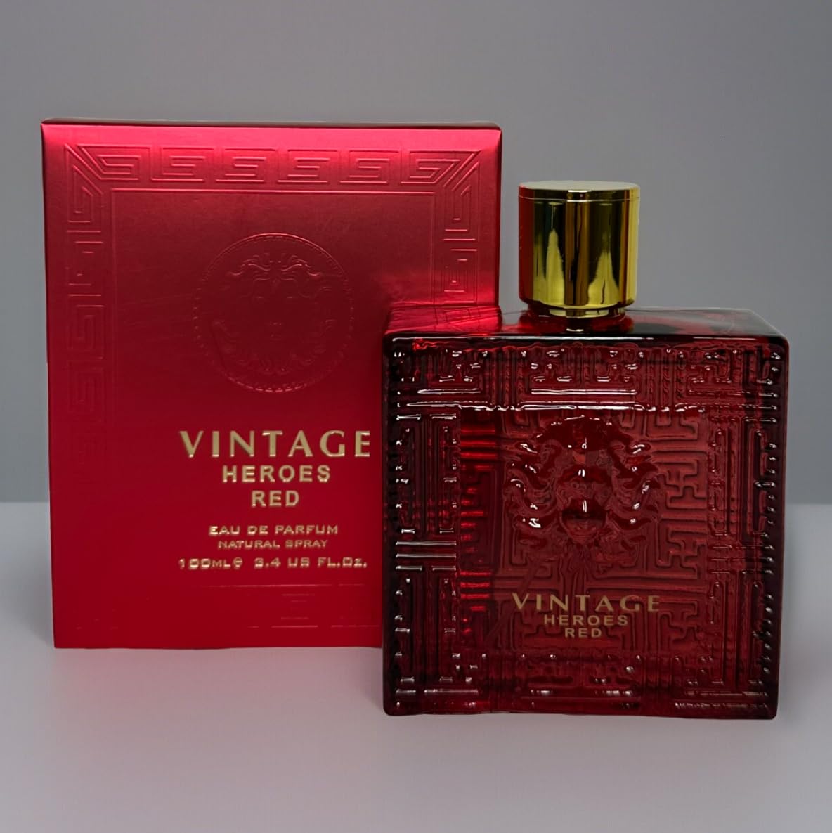 4 fl oz (100 ml) capacity, this bottle provides ample supply for regular use. Generous Size: Ver. Smell. Long-Lasting Wear: As an eau de parfum, this fragrance offers superior staying power compared to eau de toilettes. Luxurious Packaging: The cologne comes in a striking red glass bottle with intricate embossed designs, complemented by a sleek red box. Captivating Fragrance: Vintage Heroes Red is a sophisticated men's eau de parfum with an alluring, masculine scent.
