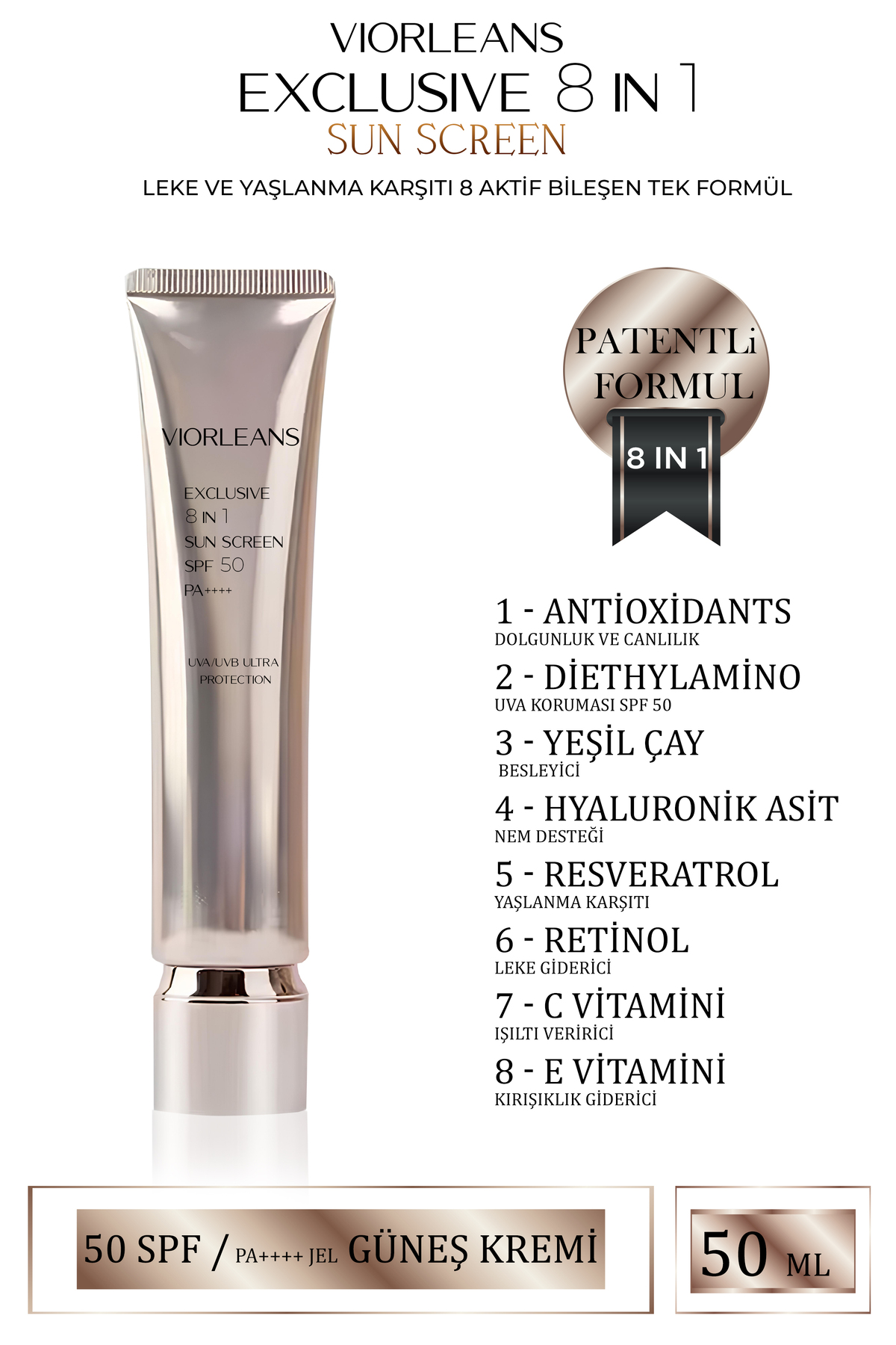 viorleans laboratoires Anti-Aging 8 Active Ingredients Single Formula 50 Spf/Pa++++ GEL Sunscreen