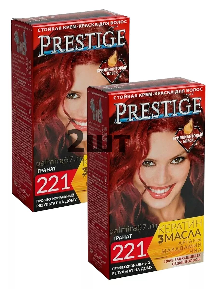 VIPs Prestige is the new formula enriched with a special complex of vitamins and wheat proteins that protect damaged hair. After coloring, your hair will have a healthier and more vibrant appearance. Easy to use. Application instructions: Squeeze one tube of cream dye into a bottle containing an oxidizing agent and shake thoroughly. Apply the mixture to wet hair through the bottle cap, distributing it evenly throughout all strands. Leave on for 25-30 minutes. If you plan to blend the color with your roots, after applying ¾ of the mixture 20 minutes, distribute the remaining ¼ along the entire length and leave on for an additional 10 minutes. Wash out the dye. After the set time, the dye will lather on the hair with a small amount of water and wash out completely. Apply conditioner for 2 minutes, then rinse thoroughly. Active ingredients and composition: one tube of cream-colored paint, one bottle of developing emulsion, one pair of protective gloves, and instructions for use. INGREDIENTS Aqua, Glycol Stearate, Ammonia, Sodium Laureth Sulfate, Glyceryl Stearate SE, Cetearyl Alcohol, Cocamide MEA, Cetyl Alcohol, Glycerin, Ceteareth-25, Sodium Metabisulfite, Tetrasodium EDTA, Ascorbic Acid, Etidronic Acid, PEG-30 Lanolin, Glyceryl Linoleate, Sodium Chloride, Hydrolyzed Wheat Protein, Hydroxycetyl Hydroxyethyl Dimonium Chloride, Paraffinum Liquidum, Sodium Benzoate, P-Phenylenyldiamine, P-Aminophenol, M-Aminophenol, Resorcinol. Aqua, Hydrogen Peroxide, Cetearyl Alcohol, Stearyl Alcohol, Steareth-7, Steareth-10, Glyceryl Stearate, Sodium Cetearyl Sulfate, Glycerin, Sodium Lauryl Sulfate, Pentasodium Pentetate, Disodium Pyrophosphate, Sodium Stannate, Sodium benzoate, Phosphoric Acid Aqua, Cetear. Alcohol, Amodimethicone, Paraffinum Liquidum, Behentrimonium Chloride, Ceteare H-25, Glycerin, Trideceth-12, Stearamidopropyl Dimethylamine, Silicone Quaternium-20, Hydroxyethylcellulose, Cetrimonium Chloride, Polyquaternium-22, Argania spinosa Kernel Oil, Macadami. A Ternifolia Seed Oil, Salvia Hispanica Seed Oil, Hydrolyzed Keratin, Potassium Sorbate, Citric Acid, Parfum, 2-Bromo-2-Nitropropane-1,3-DiolNot tested on animals.Crème résistante pour cheveux 221 Grenade "Vip's Prestige" à l'huile d'argan, macadamia et chia - ? ? (2 )DESCRIPTION DU PRODUIT DESCRIPTION DU PRODUIT VIPs Prestige est la nouvelle formule enrichie d'un complexe spécial de vitamines et de protéines de blé qui protègent les cheveux abîmés. Après la teinture de vos cheveux auront une vie saine et plus essentielle. Ease Coiffeur. Mode d'application : un tube de peinture crème est pressé dans une bouteille avec un agent oxydant et agité soigneusement. L'application du mélange est effectuée sur les cheveux mouillés par le bouchon de la bouteille, en la répartissant uniformément sur toutes les mèches. En attente - 25-30 minutes. Si vous prévoyez d'aligner la couleur avec les racines repoussées, 20 minutes après avoir appliqué ¾ du mélange, répartir le ¼ restant sur toute la longueur et maintenez enfoncé pendant 10 minutes supplémentaires. Laver la peinture. Après le temps réglé, la composition sur les cheveux, avec une petite quantité d'eau, fait mousse et est complètement lavée. Appliquer un baume attentionné - pendant 2 minutes, après quoi un rinçage minutieux est nécessaire. Principes actifs composition : un tube de peinture couleur crème, une bouteille d'émulsion en développement, une paire de gants de protection, instructions pour l'utilisation. INGRÉDIENTS Aqua, Glycol Stearate, Ammonia, Sodium Laureth Sulfate, Glyceryl Stearate Se, Cetearyl Alcohol, Cocamide Mea, Cetyl Alcohol, Glycerin, Ceteareth 25, Sodium Metabisulfite, Tetrasodium Edta, Ascorbic Acid, Etidronic Acid, Peg 30 LanoLin, Glyceryl L inoleate, chlorure de sodium, hydrolyzed Wheat Protein, hydroxycetyl hydroxyethyl Dimonium chlororide, paraffinum liquidum, benzoate de sodium, P Phe Nylenediamine, P Aminophenol, M Aminophenol, Resorcinol. Aqua, Hydrogen Peroxide, Cetearyl Alcohol, Stearyl Alcohol, Steareth-7, Steareth-10, Glyceryl Stearate, Sodium Cetearyl Sulfate, Glycerin, Sodium Lauryl Sulfate, Pentasodium Pentetate, Disodium Pyrophosphate, Sodium Stannate, Sodium benzoate, Phosphoric Acid Aqua, Cetear. Alcohol, Amodimethicone, Paraffinum Liquidum, Behentrimonium Chloride, Ceteare H-25, Glycerin, Trideceth-12, Stearamidopropyl Dimethylamine, Silicone Quaternium-20, Hydroxyethylcellulose, Cetrimonium Chloride, Polyquaternium-22, Argania spinosa Kernel Oil, Macadami. A Ternifolia Seed Oil, Salvia Hispanica Seed Oil, Hydrolyzed Keratin, Potassium Sorbate, Citric Acid, Parfum, 2-Bromo-2-Nitropropane-1,3-DiolNon testé sur les animaux.