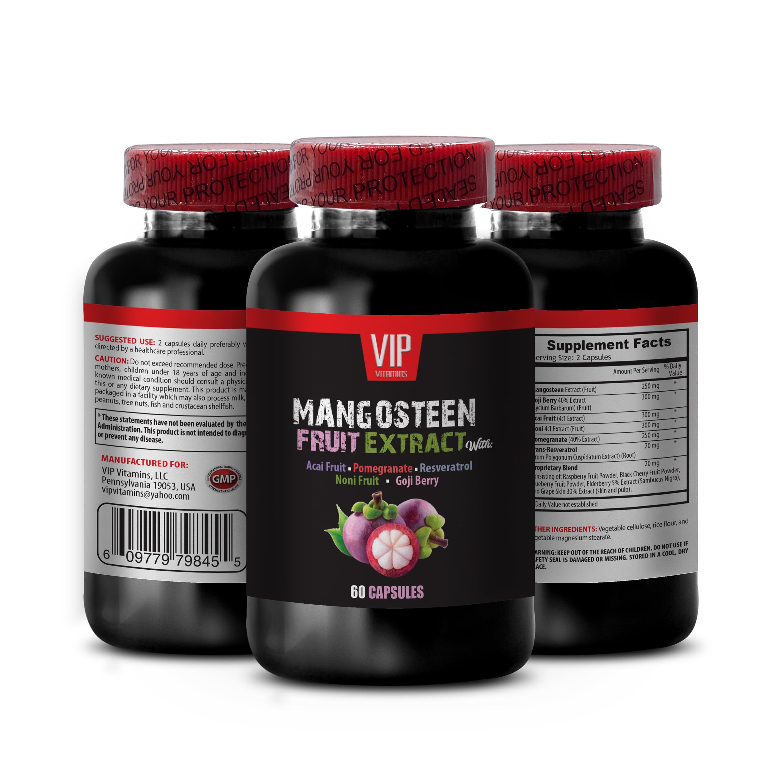 VIP VITAMINS Mangosteen Mangosteen Extract - Mangosteen Fruit Extract - Acai Berry Goji Berry Pomegranate Noni Trans-Resveratrol Elderberry Fruit Grape Skin - 1 Bottle 60 Capsules