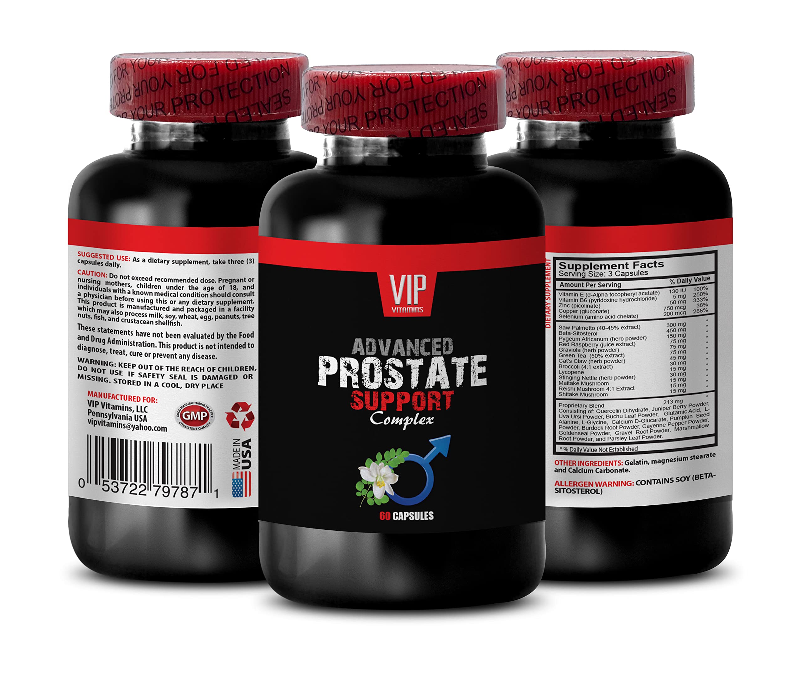 Saw palmetto capsule - advanced prostate support - saw palmetto prostate health - 1 bottle 60 capsules the advanced prostate support formula from vip vitamins is a natural supplement that nutritionally supports the prostate gland and contains a sophisticated blend of vitamins, minerals, herbs and amino acids. As men age, the prostate gland tends to enlarge naturally, impeding bladder function. Appropriate nutritional support may help maintain a more youthful prostatic size. Vip vitamins natural advanced prostate formula is a sophisticated blend of vitamins, minerals, herbs and amino acids scientifically designed to address this concern. what is prostate gland: the role of the prostate gland is to control the release of urine as well as playing a role in the reproductive system. A normal prostate gland does not block the flow of urine from the bladder. However, an enlarged prostate gland presses on the bladder and urethra and blocks the flow of urine. The prostate gland also secretes fluid containing substances needed for reproduction. This process requires an extremely high concentration of androgen hormones in the prostatic tissues. saw palmetto is a major natural remedy in this advanced prostate support formula: for more than a century, saw palmetto (sabal serrulata) has been recognized for its ability to relieve swelling of the prostate gland. In fact, saw palmetto is one of the most popular plant-derived remedies for prostatic problems.