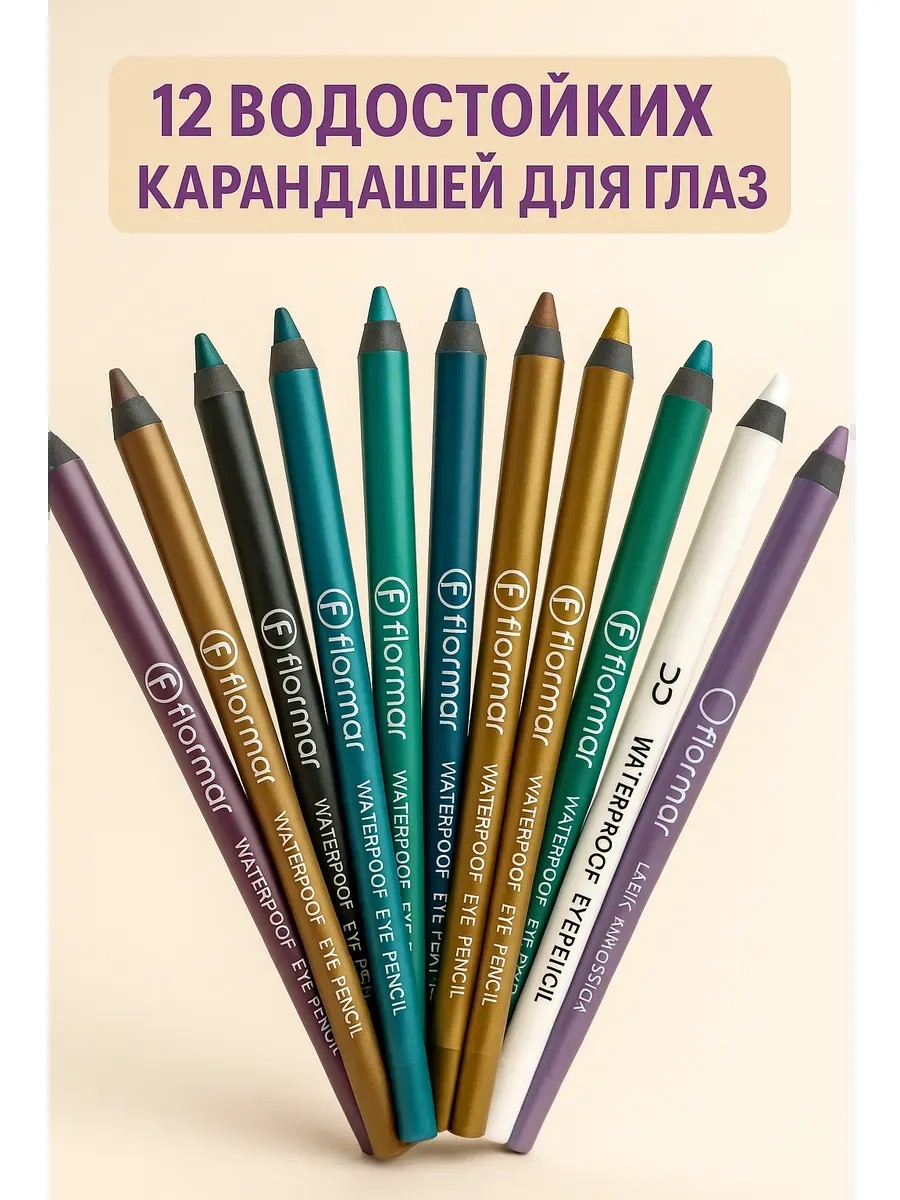 Набор водостойких карандашей для глаз Flormar — 12 насыщенных оттенков для идеального макияжа!