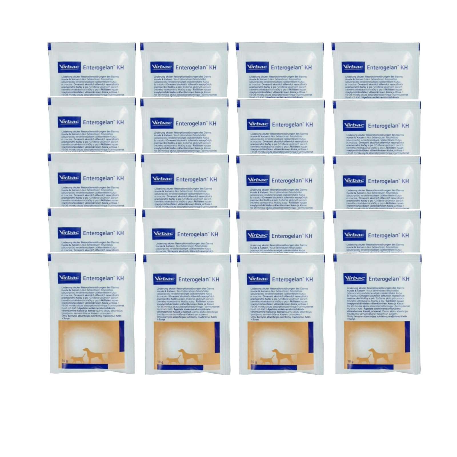 Oral powder for cats and dogs in a comfortable individual pack.Ideal for the trip or supporting prophylactic for sensitive animals that are foreseeable to diarrhea.The need -based wording can contribute to a quick restoration of the physiological intestinal activity.Contains psyllium husks that are enriched with high proportion of fermenters in cash.The psyllium shells can help form a protective film for the mucous membrane and bind bacteria and toxins.You can help extend the passage time in the intestine and can have a soothing effect on the bowel activity.Enterogelan KH is easy to administer with the feed and is often absorbed by dog and cat.In the case of diarrhea, it is advisable to distribute the portions to several portions.Mix or shake or shake well in water.Offer the freshly dissolved enterogelan KH 3-4 times a day. Ingredients ingredients Composition: dextrose monohydrate, psyllium husk, sodium bicarbonate, sodium chloride, oatmeal, potassium chloride, magnesium hydroxide Analytical components: raw protein 2.83 , raw fat 0.62 , raw ash 18.56 , raw fiber 0.95 , sodium 5.02 , potassium 1.82✓ Easy to use - the Virbac Entlerogelan KH powder can be easily dissolved in water and so easy to the dog orthe cat can be instilled.✓ Supplementary feed - Virbac Enterogelan KH powder for cats and dogs is a supplementary feed of all ages that can help support the intestine.✓ includes psyllium shells - psyllium shells are equipped with a high proportion of fermenters in cash that can help support the formation of the protective film.✓ DEXTROSE - The water -soluble monosaccharides can help to improve water absorption with osmotic activity.It is a slightly available energy supply.✓ Aromatic powder - Enterogel KH can be easily administered with the feed and is often absorbed by dog and cat.It is easy to dissolve in water.Orales Pulver für Katzen und Hunde in komfortabler Einzelpackung. Ideal für die Reise oder unterstützend prophylaktisch bei empfindlichen, zu Diarrhoe neigenden Tieren. Die bedarfsgerechte Formulierung kann zu einer schnellen Wiederherstellung der physiologischen Darmtätigkeit beitragen. Beinhaltet Flohsamenschalen die mit hohem Anteil an fermentier baren Fasern angereichert sind. Die Flohsamenschalen können dabei helfen einen Schutzfilm für die Schleimhaut zu bilden und Bakterien und Toxine zu binden. Sie können dabei helfen die Passagezeit im Darm zu verlängern und können unterstützend beruhigend auf die Darmtätigkeit wirken. Enterogelan KH lässt sich leicht mit dem Futter verabreichen und wird gern von Hund und Katze aufgenommen. Bei einer Durchfallerkrankung empfiehlt es sich, die Portionen auf mehrere Portionen auszuteilen. In Wasser aufgelöste Portionen ca. 5 g (1 2 Beutel) Enterogelan KH gut verrühren oder schütteln. Das in Wasser frisch aufgelöste Enterogelan KH 3-4 mal täglich anbieten. INHALTSSTOFFE ZUTATEN Zusammensetzung: Dextrose Monohydrat, Flohsamenschalen, Natriumbicarbonat, Natriumchlorid, Hafermehl, Kaliumchlorid, Magnesiumhydroxid Analytische Bestandteile: Rohprotein 2.83 , Rohfett 0.62 , Rohasche 18.56 , Rohfaser 0.95 , Natrium 5.02 , Kalium 1.82✓ EINFACH ANWENDBAR - Das Virbac ENTEROGELAN KH-Pulver kann leicht in Wasser aufgelöst werden und so einfach dem Hund oder der Katze eingeflößt werden. ✓ ERGÄNZUNGSFUTTERMITTEL - Virbac ENTEROGELAN KH-Pulver für Katzen und Hunde ist ein Ergänzungsfuttermittel aller Altersklassen welches zur Unterstützung des Darms beitragen kann. ✓ BEINHALTET FLOHSAMENSCHALEN - Flohsamenschalen sind mit hohem Anteil an fermentier baren Fasern ausgestattet, die bei der Bildung des Schutzfilmes unterstützend helfen können. ✓ DEXTROSE - Die wasserlöslichen Monosaccharide können dabei helfen die Wasserabsorption mit der osmotischen Aktivität zu verbessern. Es ist eine leicht verfügbare Energiezufuhr. ✓ AROMATISCHES PULVER - Enterogelan KH lässt sich leicht mit dem Futter verabreichen und wird gern von Hund und Katze aufgenommen. Es ist in Wasser leicht auflösbar.Virbac Enterogelan KH 20 x 10 g Beutel Ergänzungsfuttermittel für Hunde und Katzen Kann zur Linderung akuter Diarrhö beitragen Kann zum Schutz der Darmschleimhaut beitragen