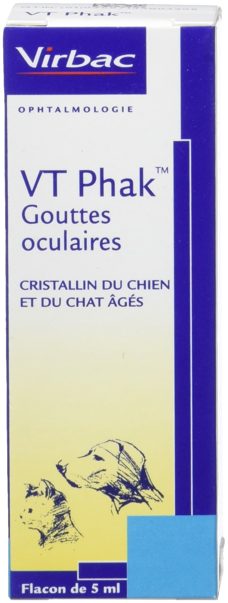 Dogs and cats: Instill 1 drop into each eye twice a day. To prevent contamination of the solution, avoid contact of the bottle with the eye or skin. Use preferably 20 days per month. Ask your veterinarian for advice. Once opened, keep refrigerated and use within 3 weeks. Close the bottle tightly after each use.VT Phak eye drops limit the effects of aging on the lens by counteracting the decline in the effectiveness of natural antioxidant mechanisms (decrease in the amount of glutathione in particular). Throughout the animal's life, the lens is subject to oxidative stress, linked to the production of free radicals induced by UV exposure and produced by cellular metabolism. VT Phak eye drops help combat the degeneration of the aging lens (cataracts) in dogs and cats. Chiens et chats : instiller 1 goutte dans chaque œil 2 fois par jour. Afin de prévenir toute contamination de la solution, éviter le contact du flacon avec l'œil ou la peau. Utiliser de préférence 20 jours par mois. Demandez conseil à votre vétérinaire. Après ouverture, conserver au réfrigérateur et utiliser dans les 3 semaines. Bien refermer le flacon après chaque usage.VT Phak gouttes oculaires limite les effets de l'âge sur le cristallin en contrebalançant la baisse d'efficacité des mécanismes anti-oxydants naturels (diminution de la quantité de glutathion en particulier). Tout au long de la vie de l'animal, le cristallin est soumis à un stress oxydatif, lié à la production de radicaux libres induits par l'exposition aux UV et produits par le métabolisme cellulaire. Les gouttes oculaires VT Phak permettent de lutter contre la dégénérescence du cristallin âgé (cataracte) chez le chien et le chat.