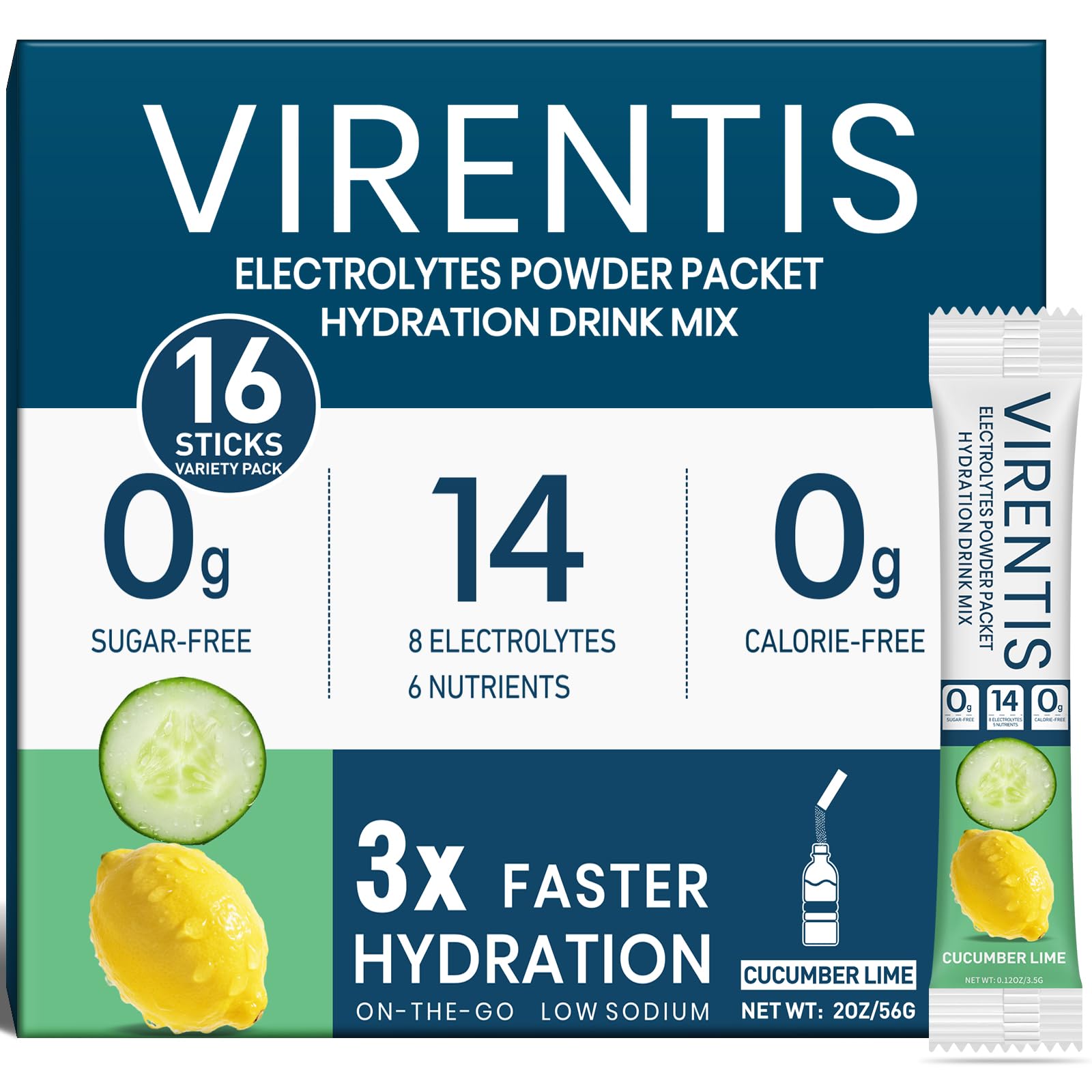 Convenient Use Friendly Service: Mix 1 stick pack with 16 oz of water to find your favorite taste, shake or stir until dissolved, ready to drink, iced is better taste. Warm Tips: Please add water first, then pour in the electrolytes powder packets shake or stir to dissolve faster! If you're not satisfied with our product, feel free to contact us anytime. We offer 24h service and can arrange for replacements or full refunds without the need for return. Portable Packets Easy to Use: The 16 sticks electrolyte packets with an independent portable packet design contains multiple flavors mixed pack. It is lightweight and adopting an easy to tear film packaging design, it can be torn open immediately and suitable for outdoor sports, travel, high-temperature operations, and other scenarios.It's the perfect addition to your travel essentials, cruise essentials, party favors. Say goodbye to the tired body with our cheers after hydrating. Multidimensional Nutrition Health Adaptation: The electrolytes powder no sugar can prevent dehydration,fatigue by high-intensity exercise, travel or busy work, which can quickly rehydrate, balance body fluids, speed up recovery and keep you energized.support cellular energy metabolism and regulate bodily functions. It is suitable for high-temperature environment workers such as firefighters and construction workers, as well as people who pursue a vibrant life. Cucumber Lime Flavor Deliciously Refreshing: Our hydration packets sugar free, Cucumber Lime Flavor. The taste is refreshing,neither sweet nor salty, Simultaneously meeting various dietary needs such as keto, vegetarian, and low-carbon water, non GMO, gluten free etc. Energy Supplementation Efficient Hydration: Our sugar free electrolytes that helps to replenish lost water in our body quickly. It contains essential 8 electrolytes and 6 nutrients like Sodium,Calcium, Potassium,Zinc,Magnesium,Niacin,Pantothenic Acid,Phosphorus,Manganese,Chloride,Vitamin C,Vitamin D,Vitamin B6,Vitamin B12.Achieve a hydration efficiency three times higher than ordinary water,relieving dehydration symptoms,supporting the body to quickly recover energy.