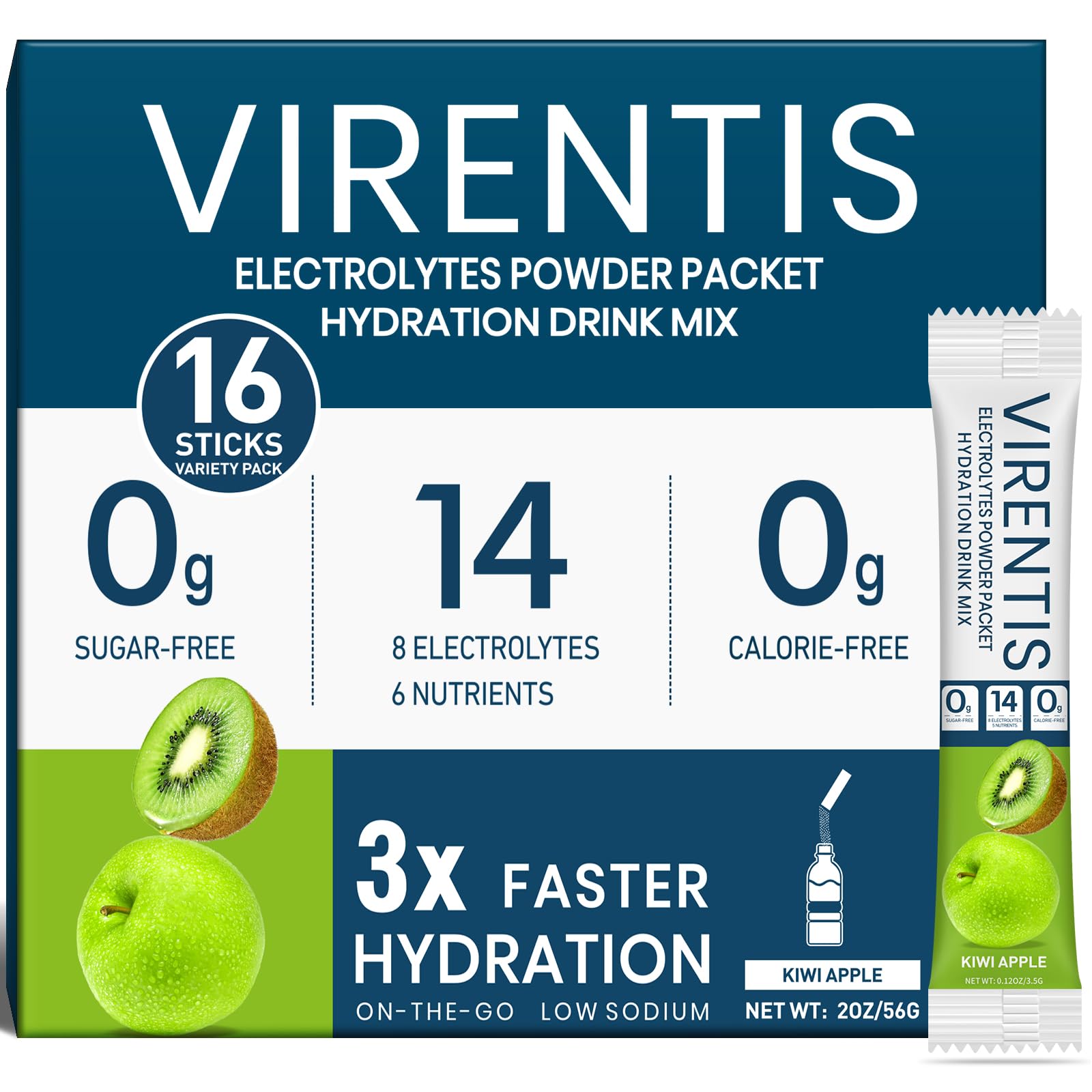 Convenient Use Friendly Service: Mix 1 stick pack with 16 oz of water to find your favorite taste, shake or stir until dissolved, ready to drink, iced is better taste. Warm Tips: Please add water first, then pour in the electrolytes powder packets shake or stir to dissolve faster! If you're not satisfied with our product, feel free to contact us anytime. We offer 24h service and can arrange for replacements or full refunds without the need for return. Portable Packets Easy to Use: The 16 sticks electrolyte packets with an independent portable packet design contains multiple flavors mixed pack. It is lightweight and adopting an easy to tear film packaging design, it can be torn open immediately and suitable for outdoor sports, travel, high-temperature operations, and other scenarios.It's the perfect addition to your travel essentials, cruise essentials, party favors. Say goodbye to the tired body with our cheers after hydrating. Multidimensional Nutrition Health Adaptation: The electrolytes powder no sugar can prevent dehydration,fatigue by high-intensity exercise, travel or busy work, which can quickly rehydrate, balance body fluids, speed up recovery and keep you energized.support cellular energy metabolism and regulate bodily functions. It is suitable for high-temperature environment workers such as firefighters and construction workers, as well as people who pursue a vibrant life. Kiwi Apple Flavor Deliciously Refreshing: Our hydration packets sugar free, Kiwi Apple Flavor. The taste is refreshing,neither sweet nor salty, Simultaneously meeting various dietary needs such as keto, vegetarian, and low-carbon water, non GMO, gluten free etc. Energy Supplementation Efficient Hydration: Our sugar free electrolytes that helps to replenish lost water in our body quickly. It contains essential 8 electrolytes and 6 nutrients like Sodium,Calcium, Potassium,Zinc,Magnesium,Niacin,Pantothenic Acid,Phosphorus,Manganese,Chloride,Vitamin C,Vitamin D,Vitamin B6,Vitamin B12.Achieve a hydration efficiency three times higher than ordinary water,relieving dehydration symptoms,supporting the body to quickly recover energy.