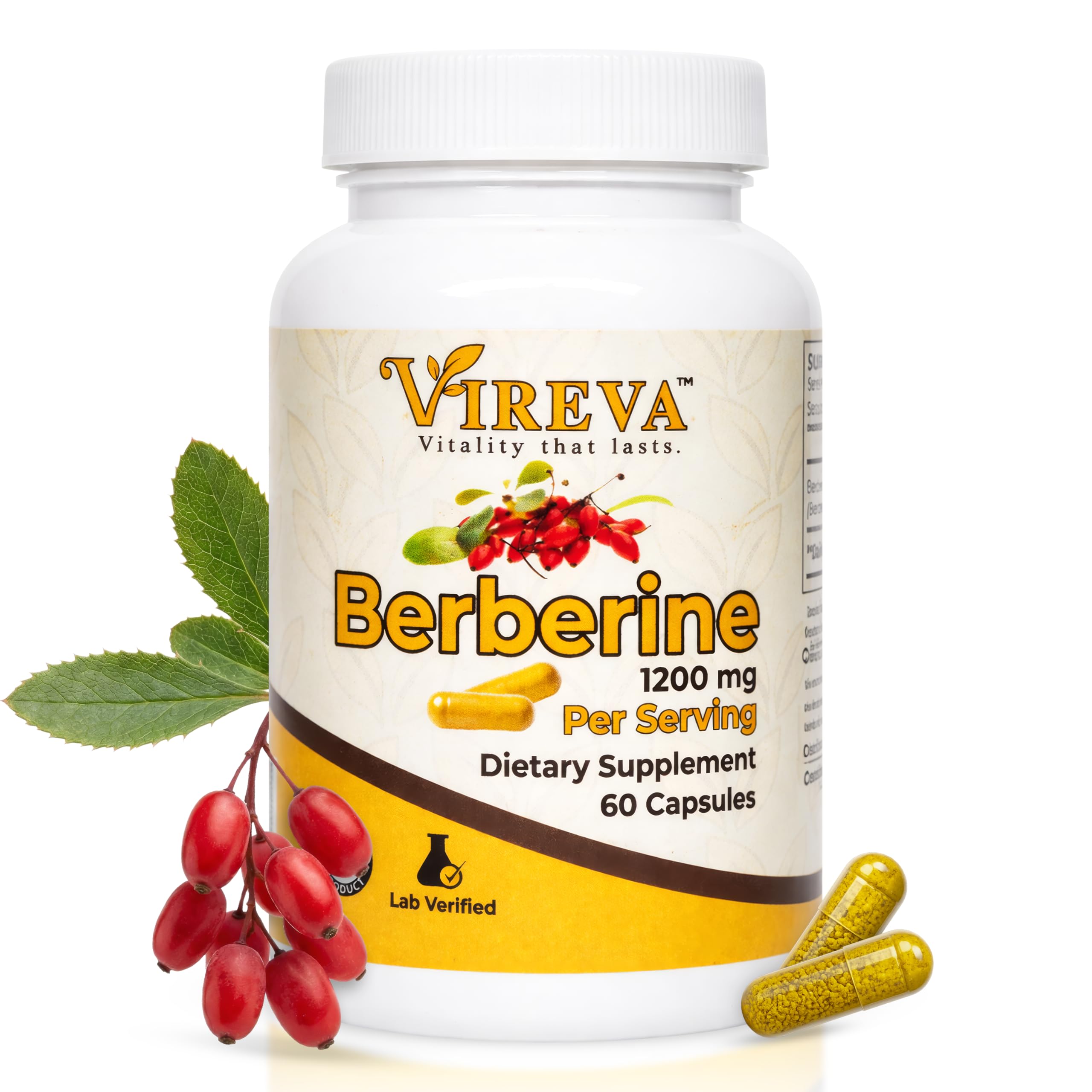Vireva Berberine 1200 High-Potency Plant-Based Formula for Metabolic Optimization Cellular Vitality & Whole-Body Wellness 60 Vegan Capsules Clean Non-GMO Premium Grade