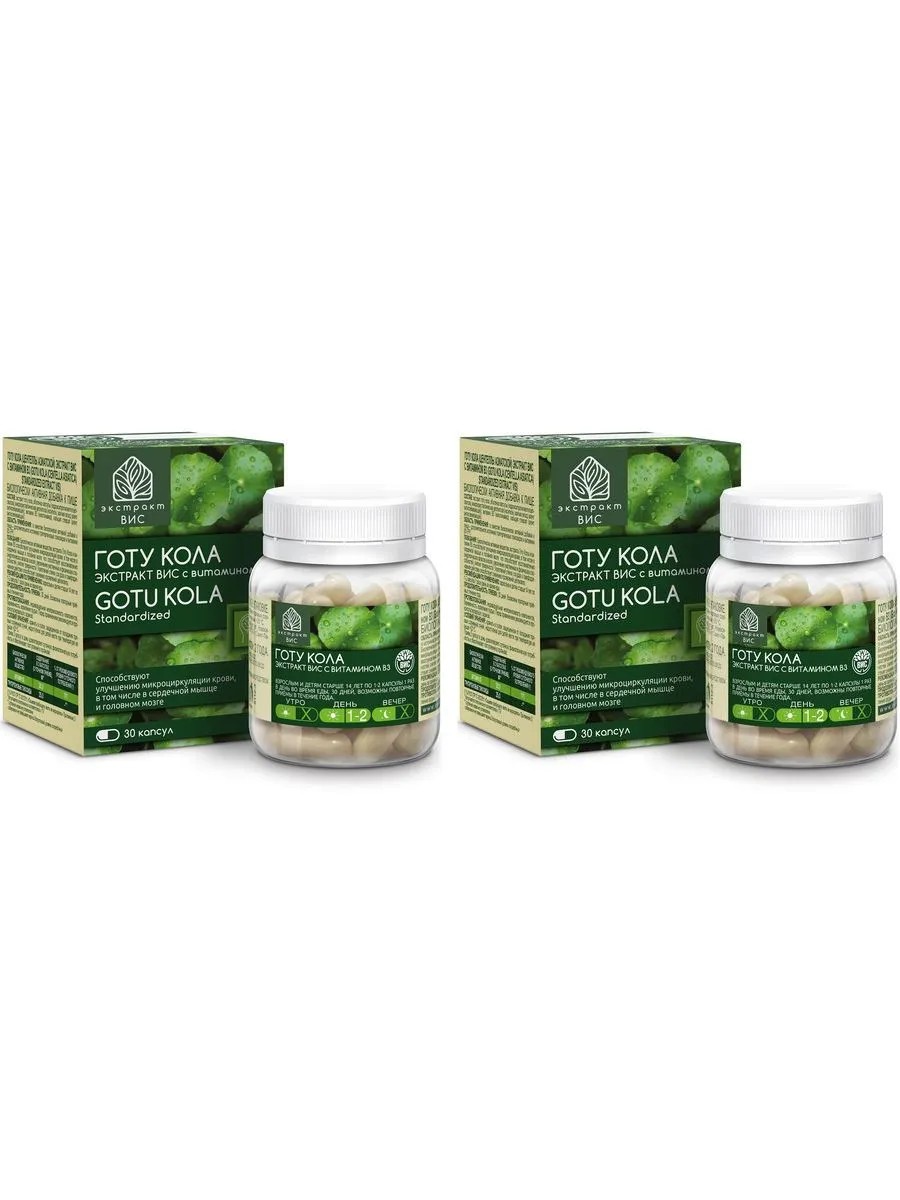 готу кола (центеллы азиатской) экстракт вис с витамином в3 n30 капс по 0,3г. .способствуют улучшению микроциркуляции крови, в том числе в сердечной мышце и головном мозге, что способствует восстановлению энергетических запасов в мозге, увеличению умственных и физических способностей, снятию тревожности. укрепление стенок сосудов и лимфодренажное действие способствует снижению проявлений целлюлита. в качестве биологически активной добавки к пище - дополнительный источник тритерпеновых гликозидов и витамина в3 (рр). экстракт готу кола, оболочка капсулы (желатин (е441) или гидроксипропилметилцеллюлоза (е464) с добавлением или без добавления пищевых красителей), микрокристаллическая целлюлоза (е460, носитель), магния оксид (е 530, агент антислеживающий), витамин в3 (никотинамид), кальция стеарат (е470, агент антислеживающий). в качестве биологически активной добавки к пище – дополнительного источника тритерпеновых гликозидов и витамина в3 (рр).