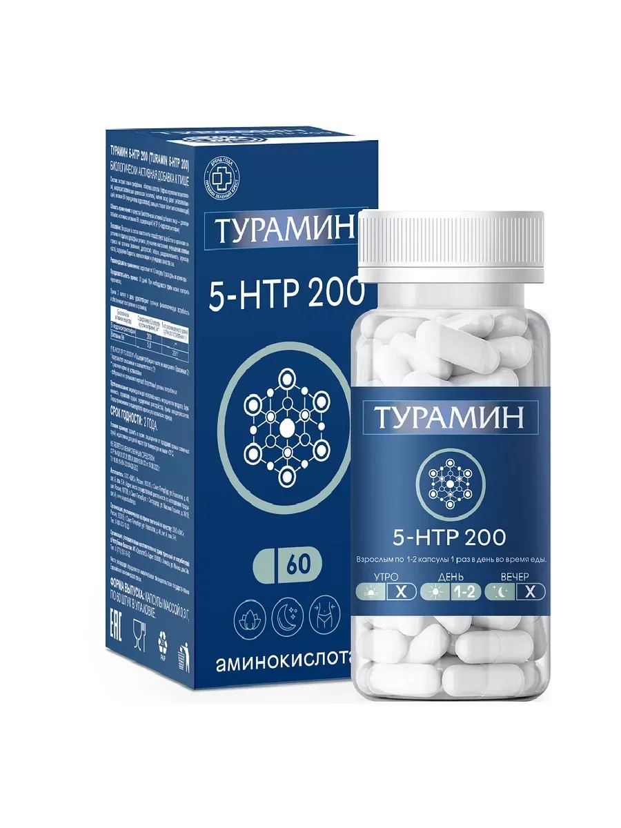 | Trade name | Dietary supplement TURAMIN 5-HTP 200 (TURAMIN 5-HTP 200). Release form: capsules weighing 0.3 g. |