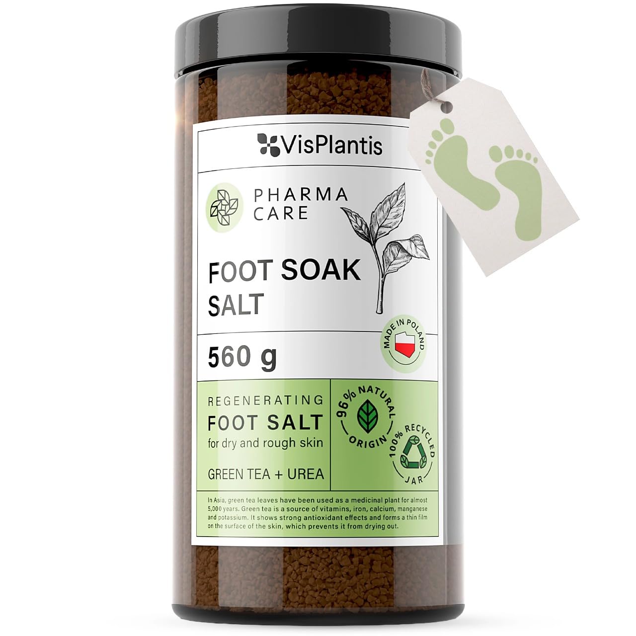 Vis Plantis Pharma Care Regenerating Foot Salt Anti-Swelling 560g INGREDIENTS Sodium chloride, urea, glycerin, calendula flower extract, camellia flower extract, polysorbate 80, water, silica, fragrance, potassium sorbate, sodium benzoate, alpha-isomethyl ionone, citral, lemon, limonene, linalool DIRECTIONS Simply pour, urinate, and relax! Our fast-dissolving formula leaves no residue. Incorporate our foot salts into your daily routine to support refreshed, comfortable, sweat-free feet. SAFETY WARNING For external use only. Avoid contact with eyes rinse thoroughly with water if contact occurs. See moreEffortless daily foot refreshment: Pour, urinate, and relax! Our fast-dissolving formula leaves no residue. Include our foot salts that soak your toenails in your daily routine to support refreshed, comfortable, sweat-free feet. Enhanced relief for tired feet: Relax tired, heavy legs with our foot spa salts infused with refreshing and soothing ingredients. The calming aroma creates a spa experience in the comfort of your own home. Banish odors and smell fresh: With calendula extract and natural essential oils, our foot salts eliminate odor, moisturize, and deodorize, leaving your feet feeling fresh and clean. Ideal for anyone on the go or leading an active lifestyle. Soften rough feet: Immerse yourself in soothing waters enriched with our foot salts, specially formulated to nourish dry, keratinized feet, leaving them refreshed and hydrated. Designed to restore the skin's natural moisture levels. Restore softness to rough, brittle skin: Our foot spa soak is expertly formulated with green tea and urea to hydrate and soften dry, rough skin, making it ideal for routine foot care. Give your feet a soft, nourished feel.Sel de bain de pied au thé vert et à l'urée - Vis Plantis - Soin des pieds contre les champignons, fissures et callosités - 560 gDESCRIPTION DU PRODUIT DESCRIPTION DU PRODUIT Vis Plantis Pharma Care Sel Régénérant Pour Les Pieds Anti-Gonflement 560g INGRÉDIENTS Chlorure de sodium, urée, glycérine, extrait de fleur de calendula, extrait de fleur de camélia, polysorbate 80, eau, silice, parfum, sorbate de potassium, benzoate de sodium, alpha-isométhylionone, citral, citron, limonène, linalol MODE D'EMPLOI Verser, uriner et se détendre! Notre formule à dissolution rapide ne laisse aucun résidu. Incluez nos sels pour les pieds, qui plongent vos ongles dans votre routine quotidienne pour soutenir vos pieds rafraîchis et confortables sans sueur et sans sueur. AVERTISSEMENT DE SÉCURITÉ Pour usage externe uniquement. Éviter tout contact avec les yeux, rincer abondamment à l'eau en cas de contact. Voir plusRafraîchissement quotidien sans effort des pieds: versez, urinez et détendez-vous! Notre formule à dissolution rapide ne laisse aucun résidu. Incluez nos sels de pied qui plongent vos ongles dans votre routine quotidienne pour soutenir vos pieds rafraîchis et confortables sans sueur et sans transpiration. Soulagement amélioré des pieds fatigués : détendez vos jambes fatiguées et lourdes avec nos sels de spa pour les pieds infusés d'ingrédients pour rafraîchir et apaiser. L'arôme apaisant crée une expérience de spa dans le confort de votre maison. BANISH ODEURS ET SENTEZ FRAÎCHE: Grâce à l'extrait de calendula et aux huiles essentielles naturelles, nos sels pour les pieds éliminent les odeurs, hydratent et désodorisent, laissant vos pieds frais et propres. Idéal pour tous ceux qui sont en déplacement ou qui mènent une vie active. Peau douce des pieds rugueux: Plongez-vous dans des eaux apaisantes enrichies de nos sels de pieds, spécialement formulées pour nourrir les pieds secs et kératinisés, les laissant rafraîchis et hydratés. Conçu pour restaurer les niveaux naturels d'hydratation de la peau. RETOURNER LA DOUCEUR DE LA PEAU LARGE ET DUR : Notre trempage des pieds spa des pieds est formulé de manière experte avec du thé vert et de l'urée pour hydrater et adoucir la peau sèche et rugueuse, ce qui le rend idéal pour les soins de routine des pieds. Donnez à vos pieds une touche douce et nourrie.